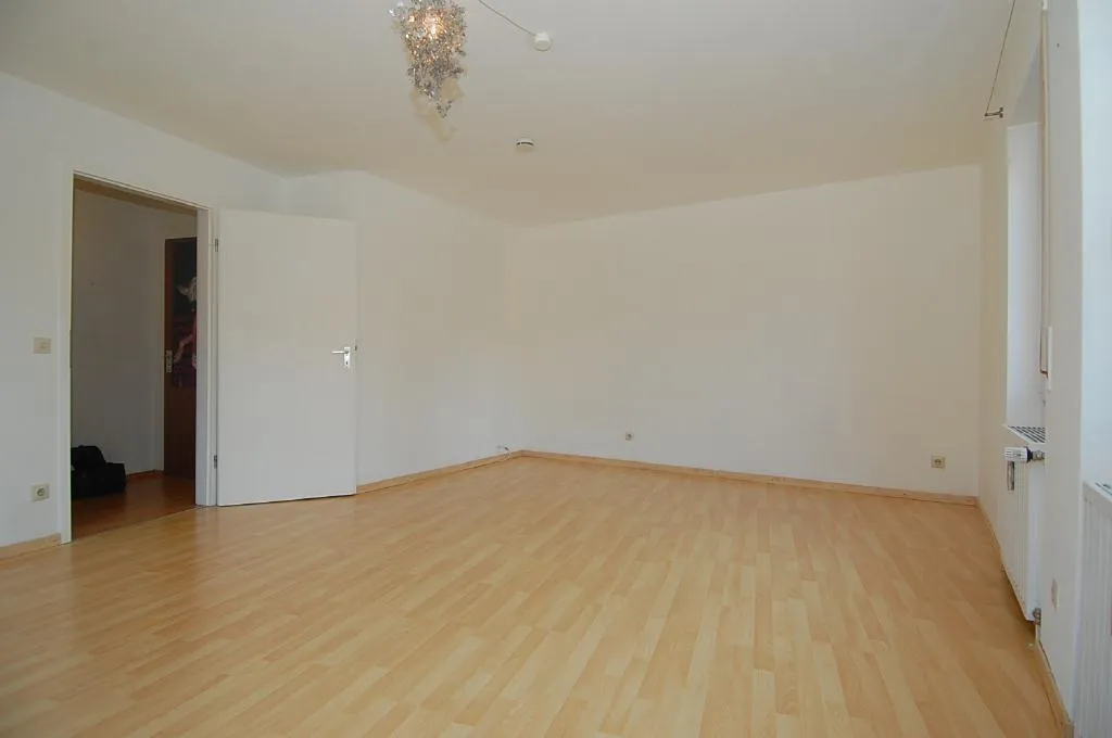 Der Wohnbereich und der Flur sind mit Laminat ausgestattet. Alle Wände sind mit Raufaser tapeziert.