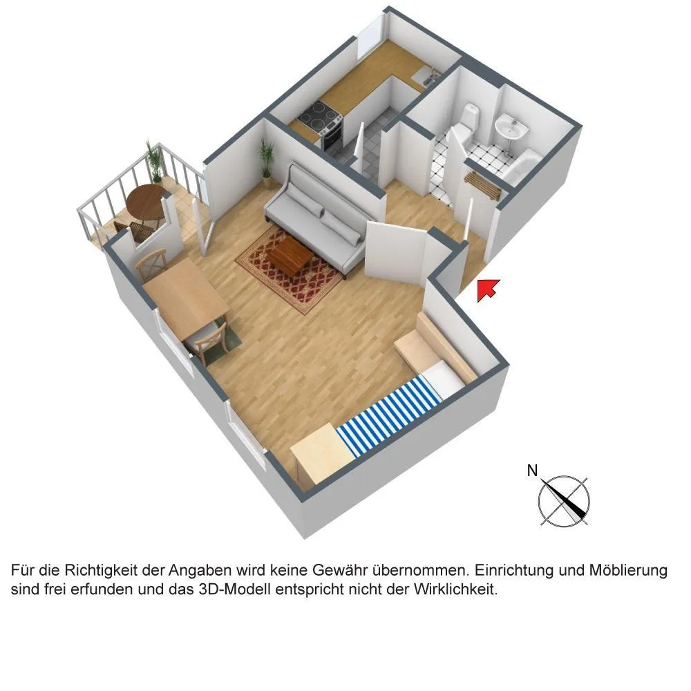 Trotz sorgfältiger Prüfung der im Exposé gemachten Angaben, können wir für die Richtigkeit und Vollständigkeit der Angaben keine Haftung übernehmen. Bitte beachten Sie, dass die Immobilie auf den Bildern größer wirkt als sie in der Realität ist.