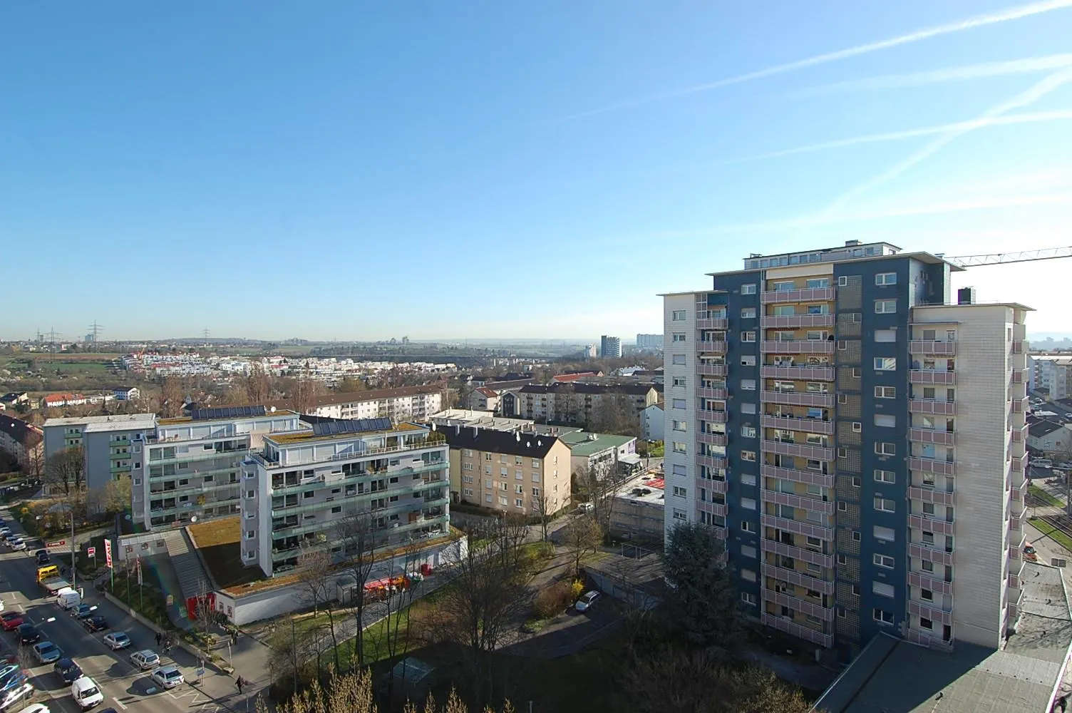 Das Hochhaus liegt zentral, umgeben von einer hervorragenden Infrastruktur. Hier befinden sich Bäcker, Apotheke, REWE sowie diverse weitere Geschäfte und Gastronomien direkt vor der Tür. Das Hallenschwimmbad von Zuffenhausen ist bequem zu Fuß erreichbar. Die neue Rot-Mitte mit dem gleichnamigen Architektennamen "Hans-Sharoun-Platz" wird Ende 2013 fertig gestellt. Der "Penny"-Supermarkt steht bereits als Mieter fest.
