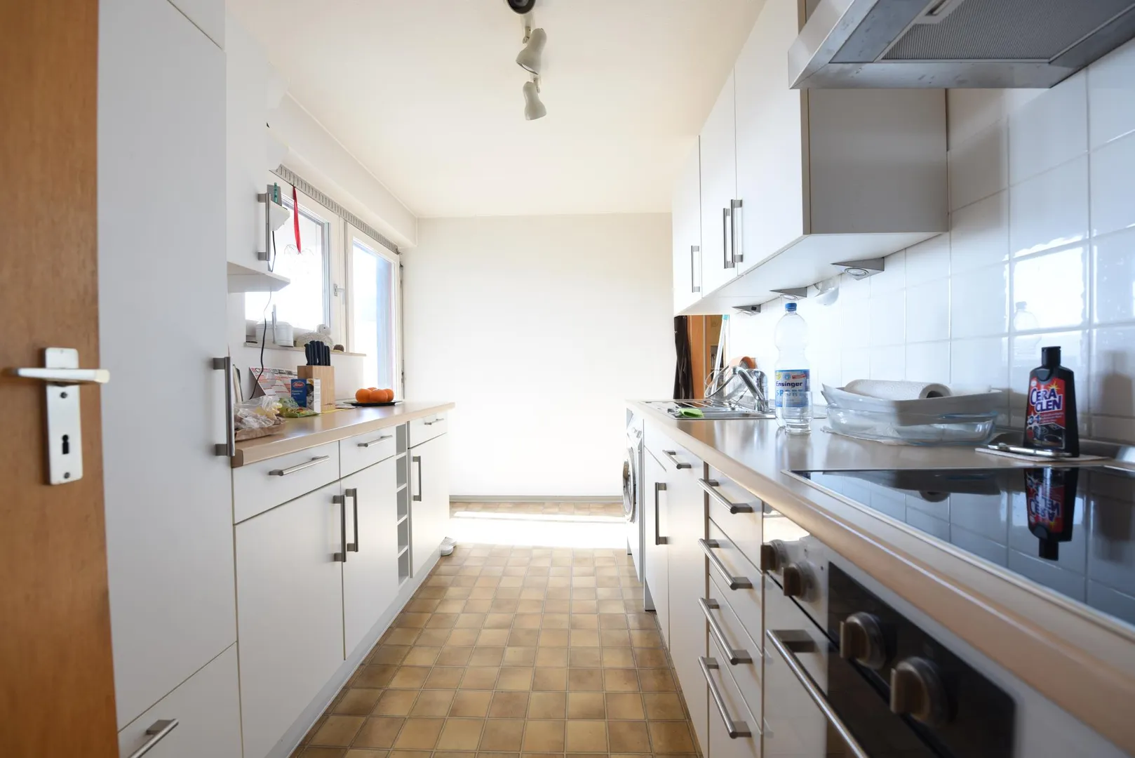 Die Küche ist mit einem PVC-Boden ausgestattet. Die sehr gepflegte Einbauküche kann vom aktuellen Mieter für 3.000 EUR (VB) übernommen werden.