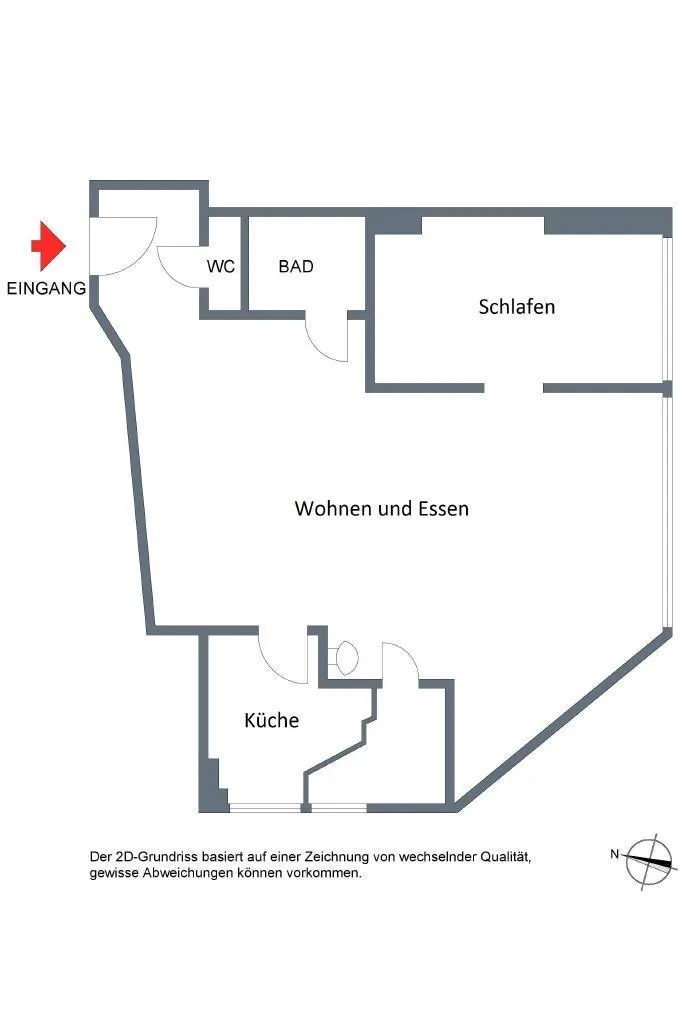 Hier sind Sie Ihr eigener Innenarchitekt: Eine Umgestaltung zur 2 Zimmer-Wohnung lässt sich gut realisieren.