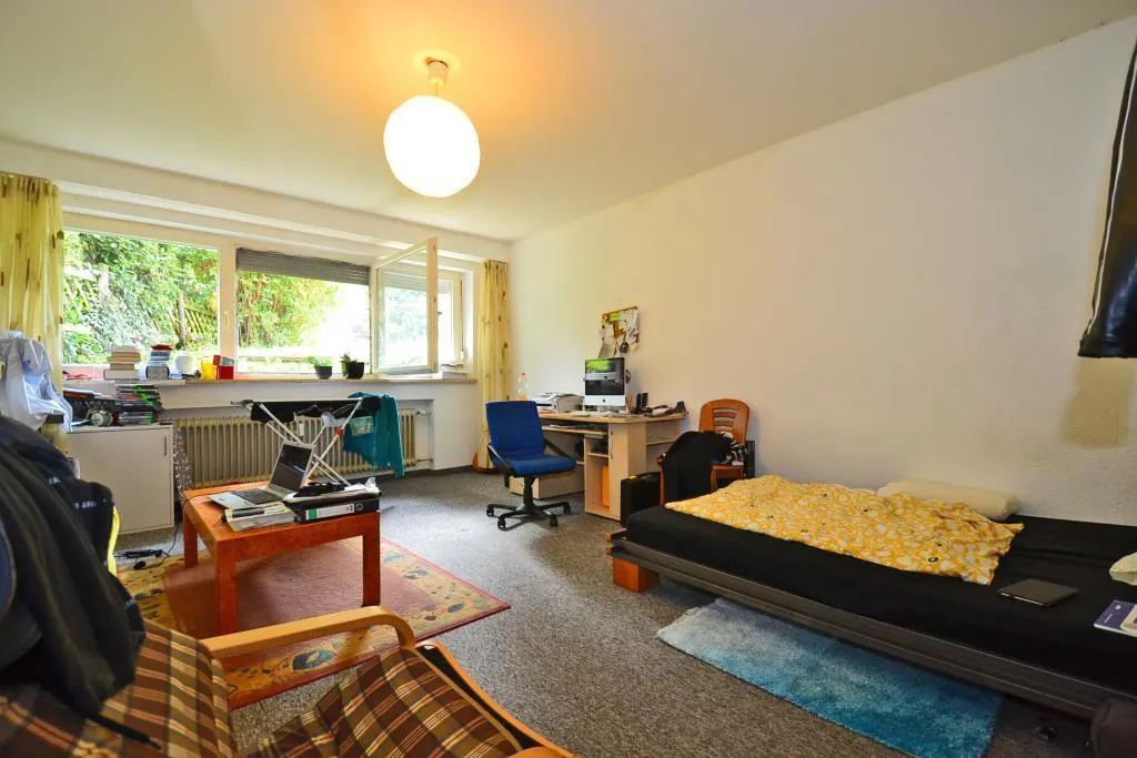 Diese bequeme und zentrumsnahe 1-Zimmer-Wohnung befindet sich im Souterrain (Untergeschoss) einer 6-Familien-Doppelhaushälfte.