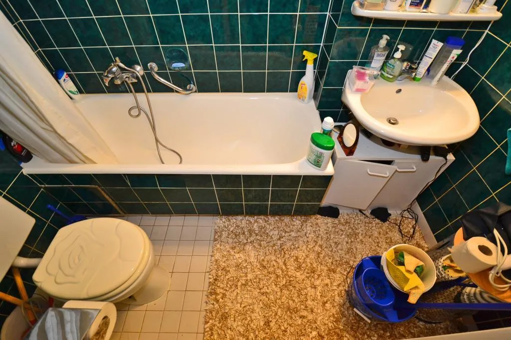 Das Bedezimmer ist 3/4 gefliest und ist mit einer Badewanne, einem Handtuchheizkörper und einem WC ausgestattet.