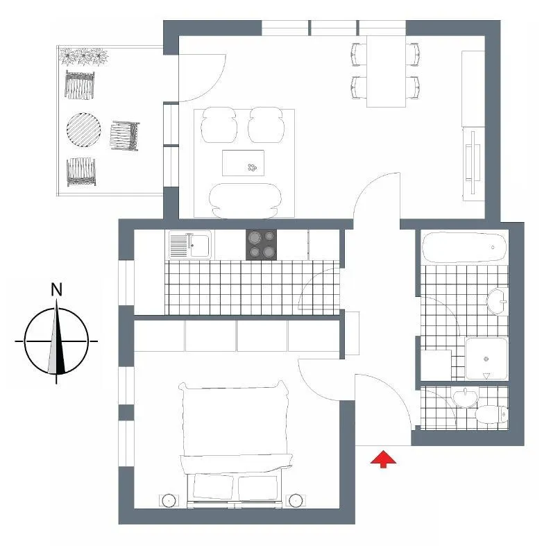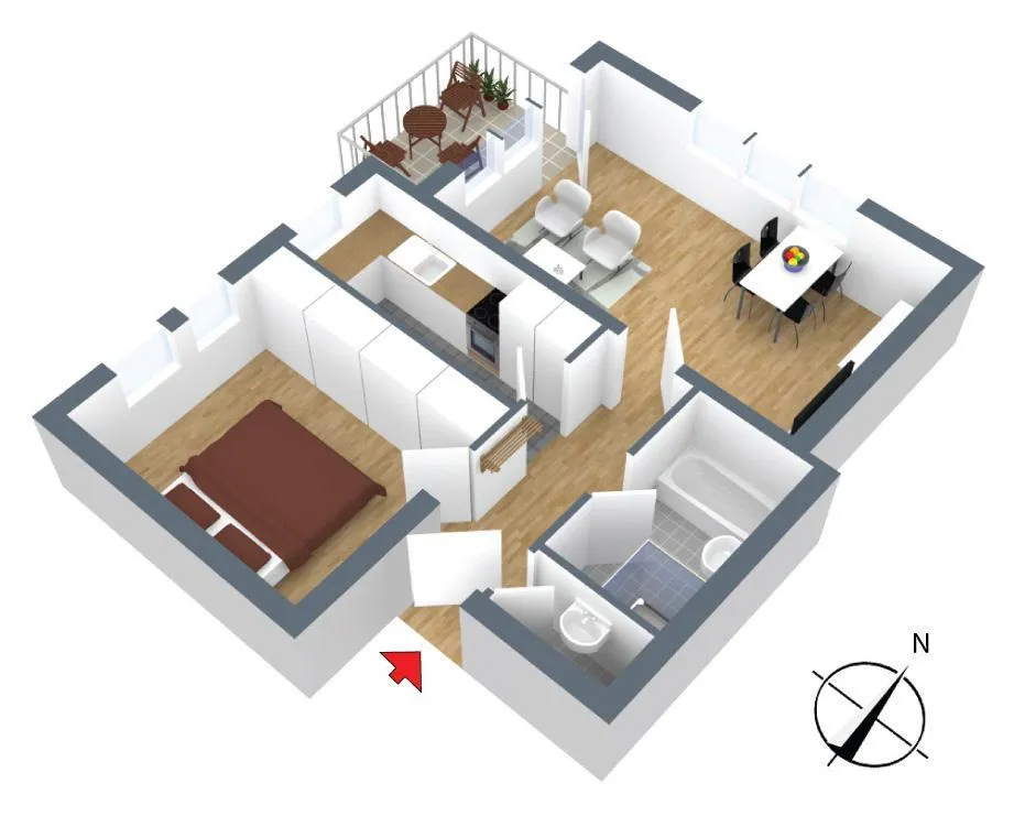 Der Grundriss der Wohnung ist gut. Jeder Raum ist vom Flur aus erreichbar. Das WC ist separat. Die Wohnung verfügt über einen ca. 6 m² großen Balkon.