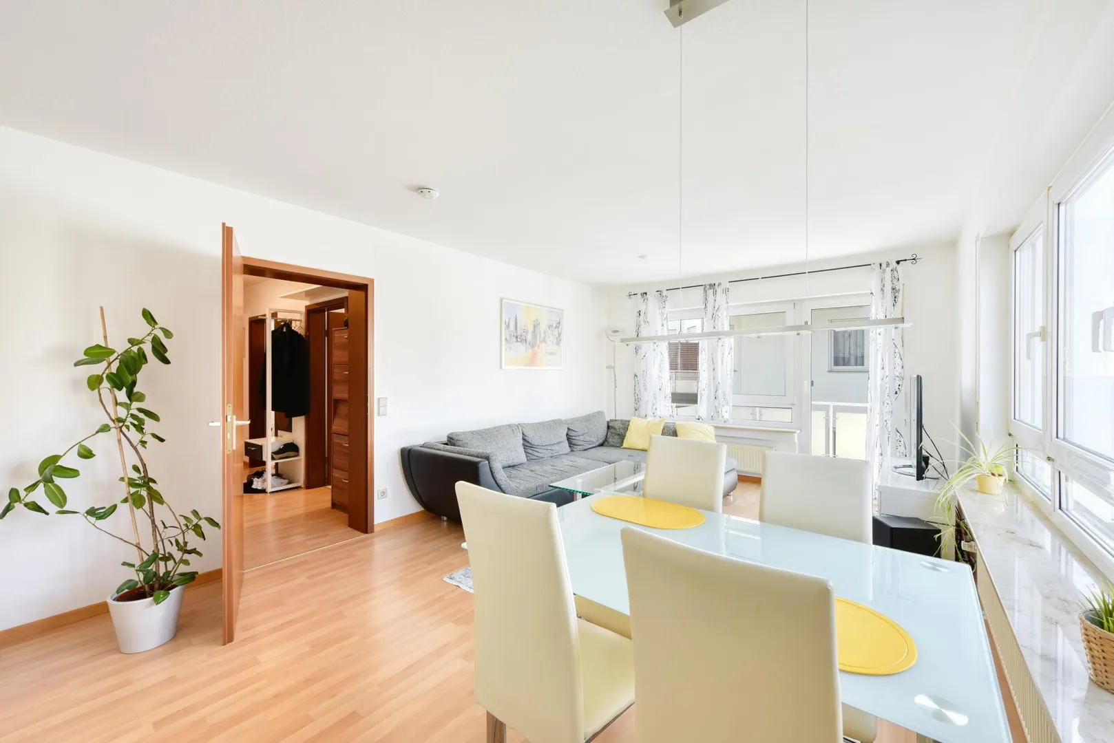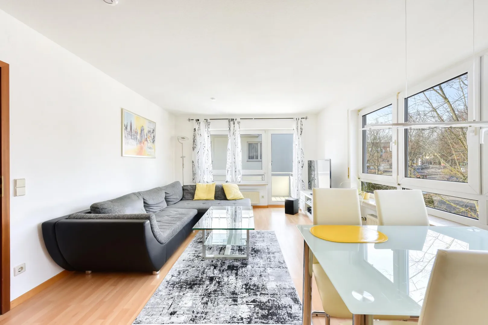 Der Grundriss der Wohnung ist gut. Jeder Raum ist vom Flur aus erreichbar. Der ca. 6 m² große West-Balkon ist über das Wohnzimmer begehbar. Das separate WC sowie das Badezimmer sind innenliegend.