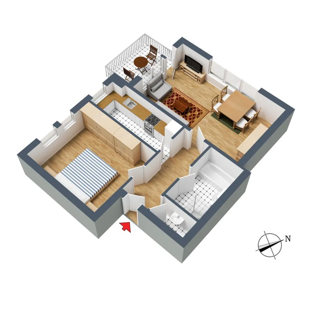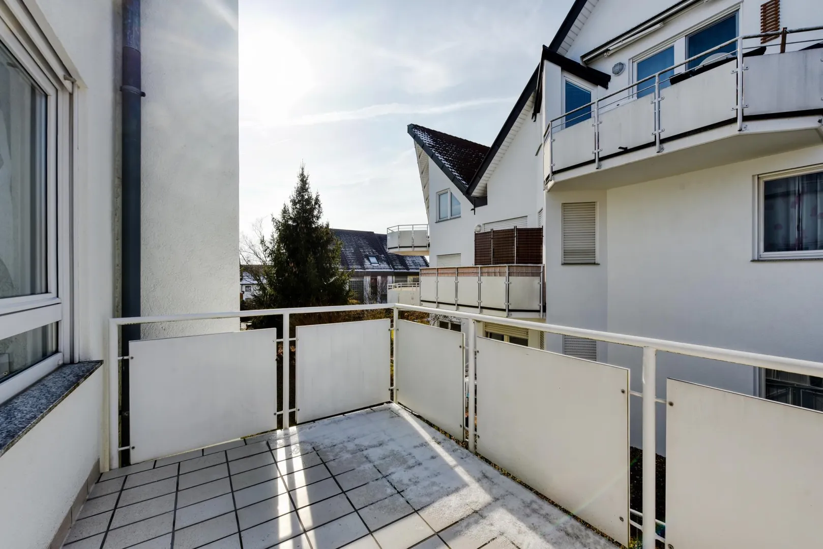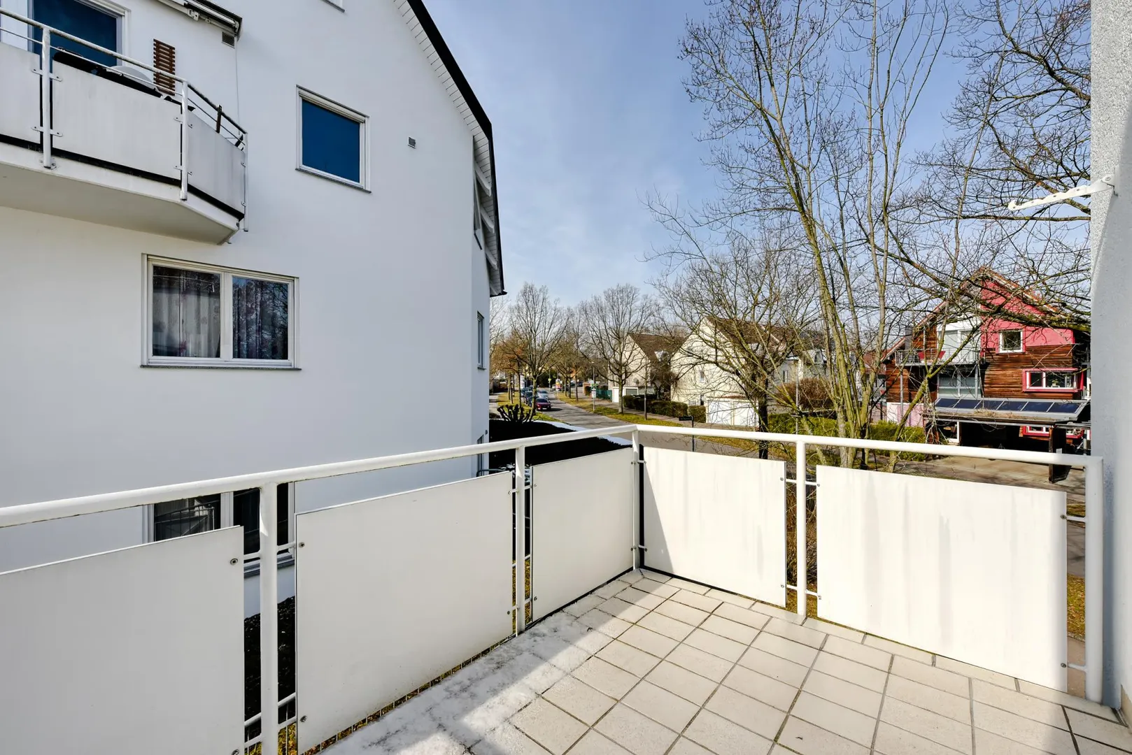 Das Schlafzimmer sowie die Küche sind nach Westen ausgerichtet. Das Wohnzimmer ist nach Westen und nach Norden ausgerichtet.