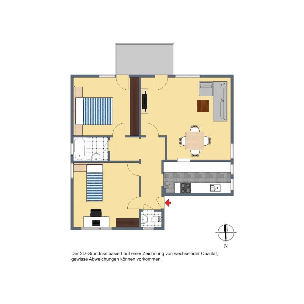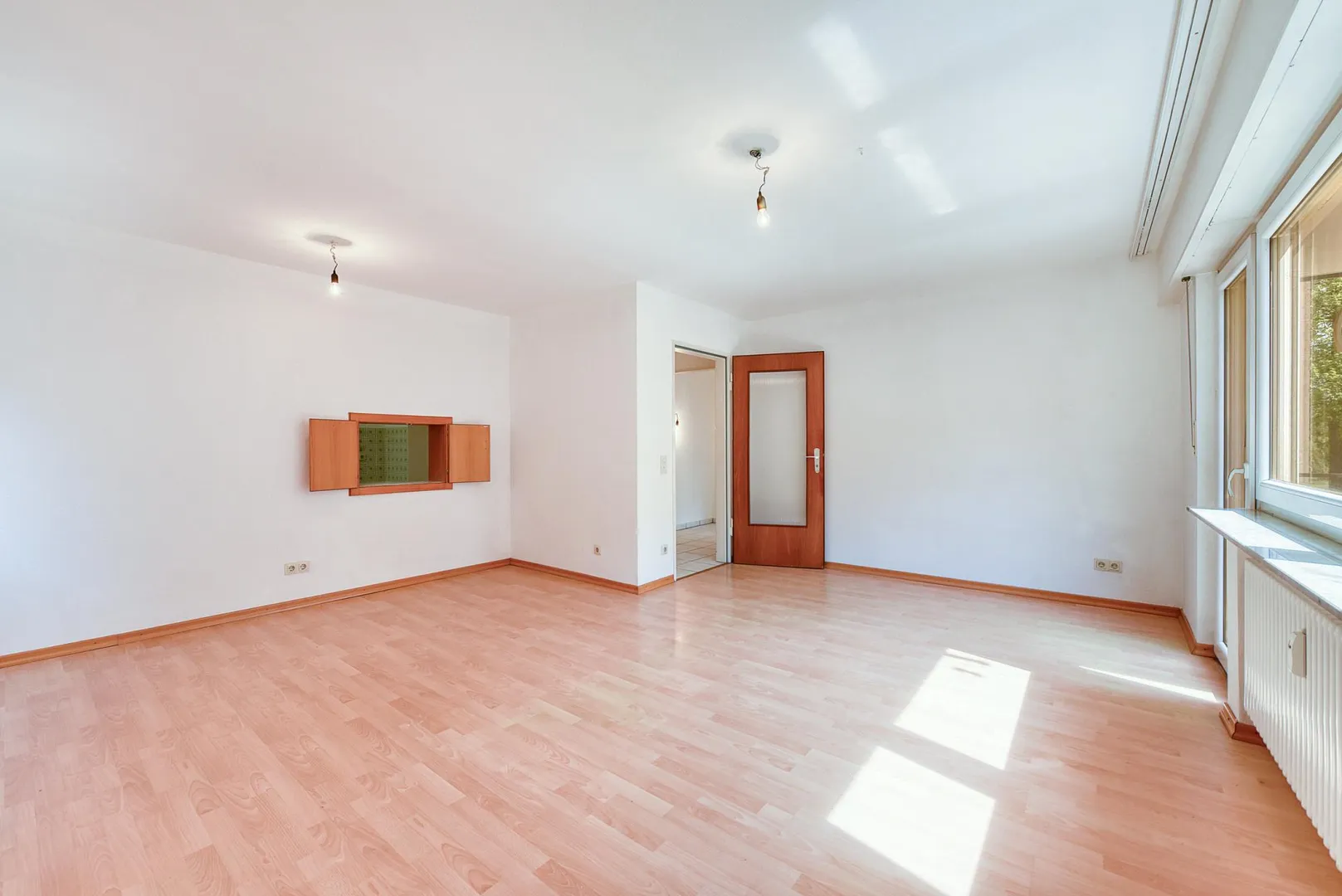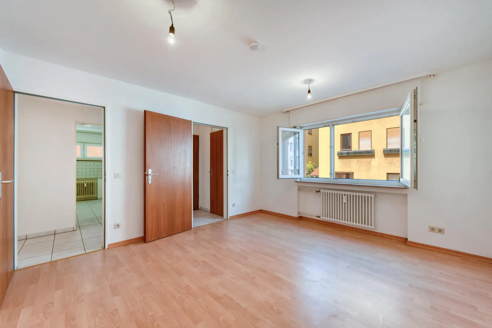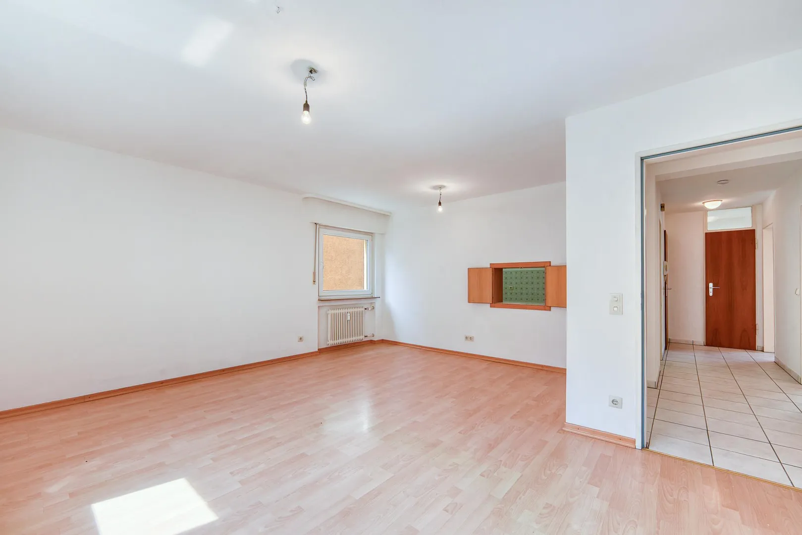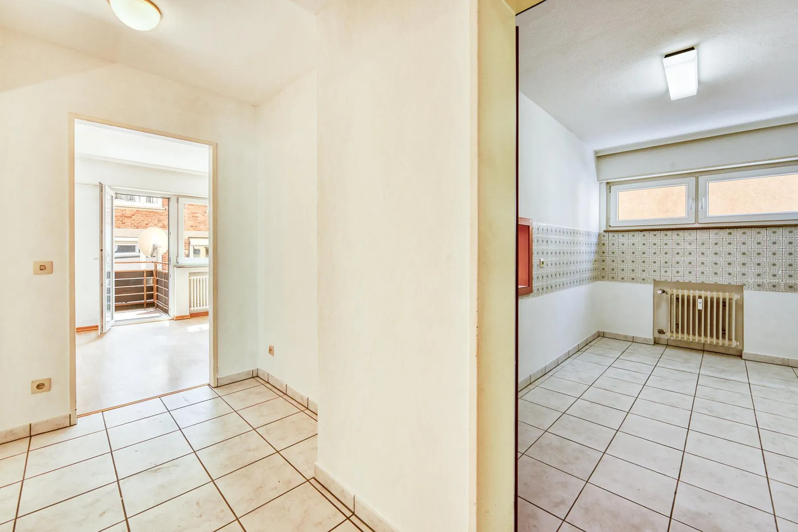 Der Grundriss der Wohnung ist sehr gut. Alle Räume sind vom Flur begehbar. Das Badezimmer verfügt über ein Fenster. Das WC mit Fenster ist separat. Der Balkon ist von zwei Zimmern begehbar. Von der Küche zum Ess-/Wohnbereich gibt es eine Durchreiche.