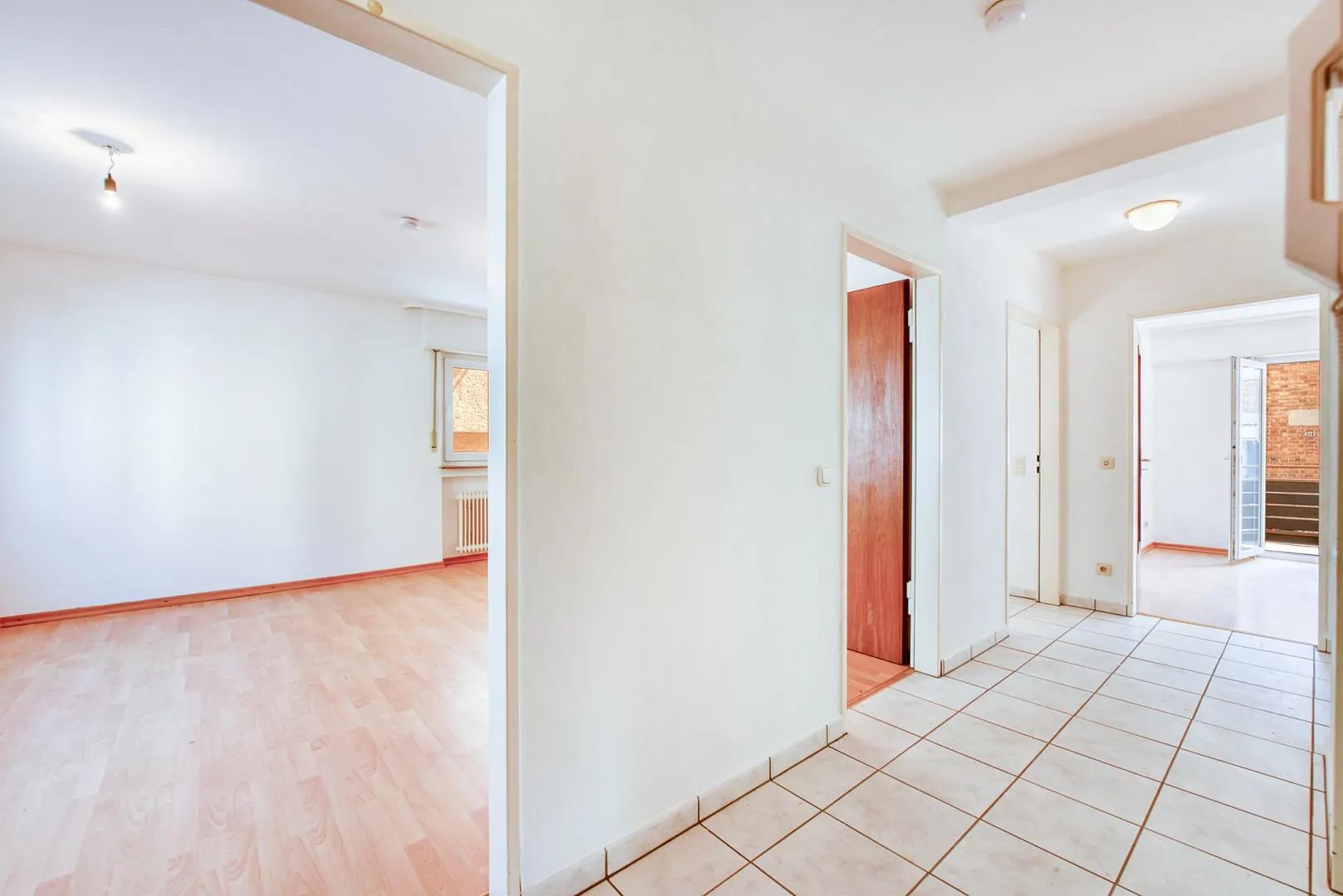 Die Böden in den Zimmern sind mit Laminat ausgestattet. Die Böden im Flur, in der Küche, im Badezimmer sowie im WC sind gefliest.