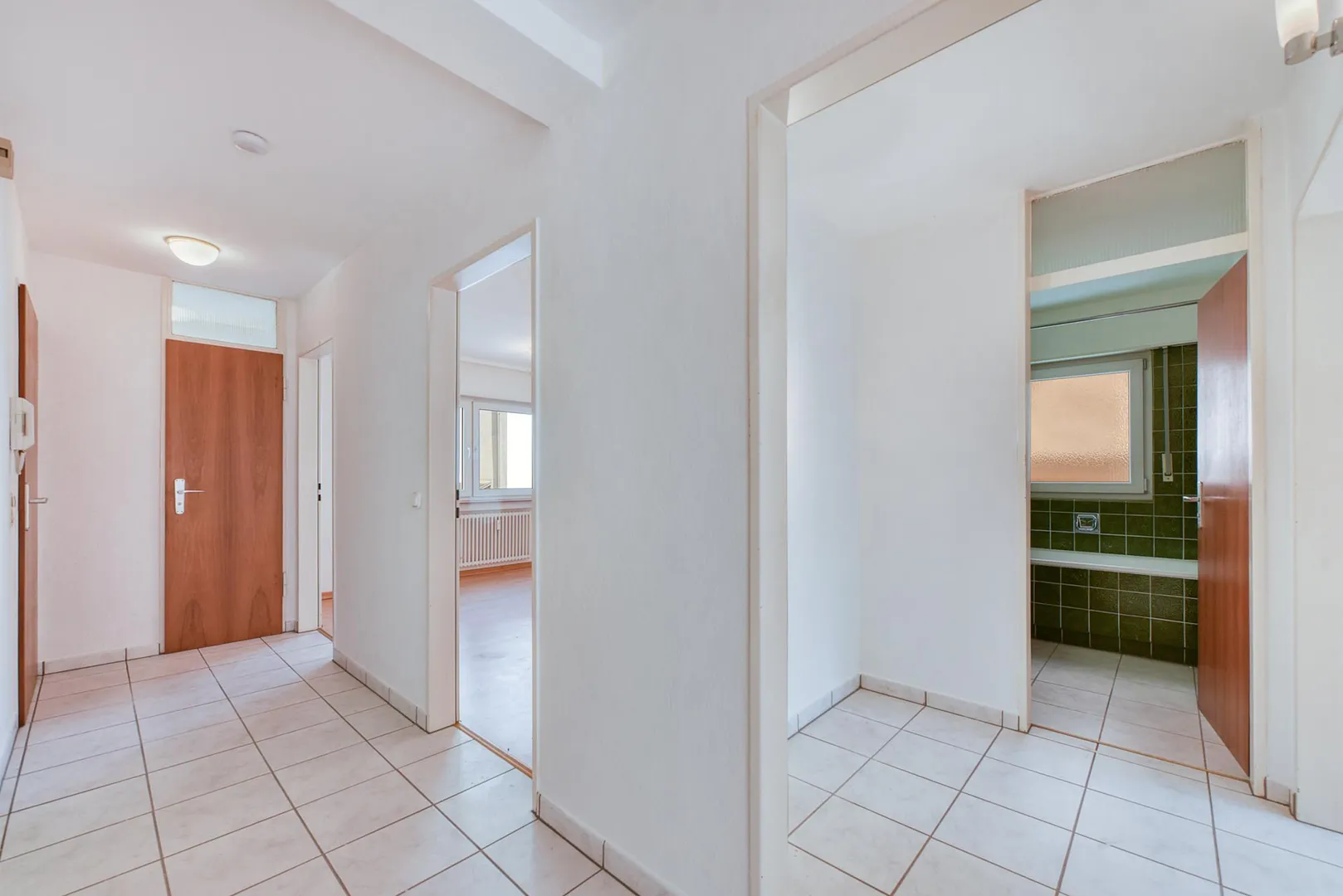 Die Wände sind überwiegend tapeziert und frisch, weiß gestrichen.