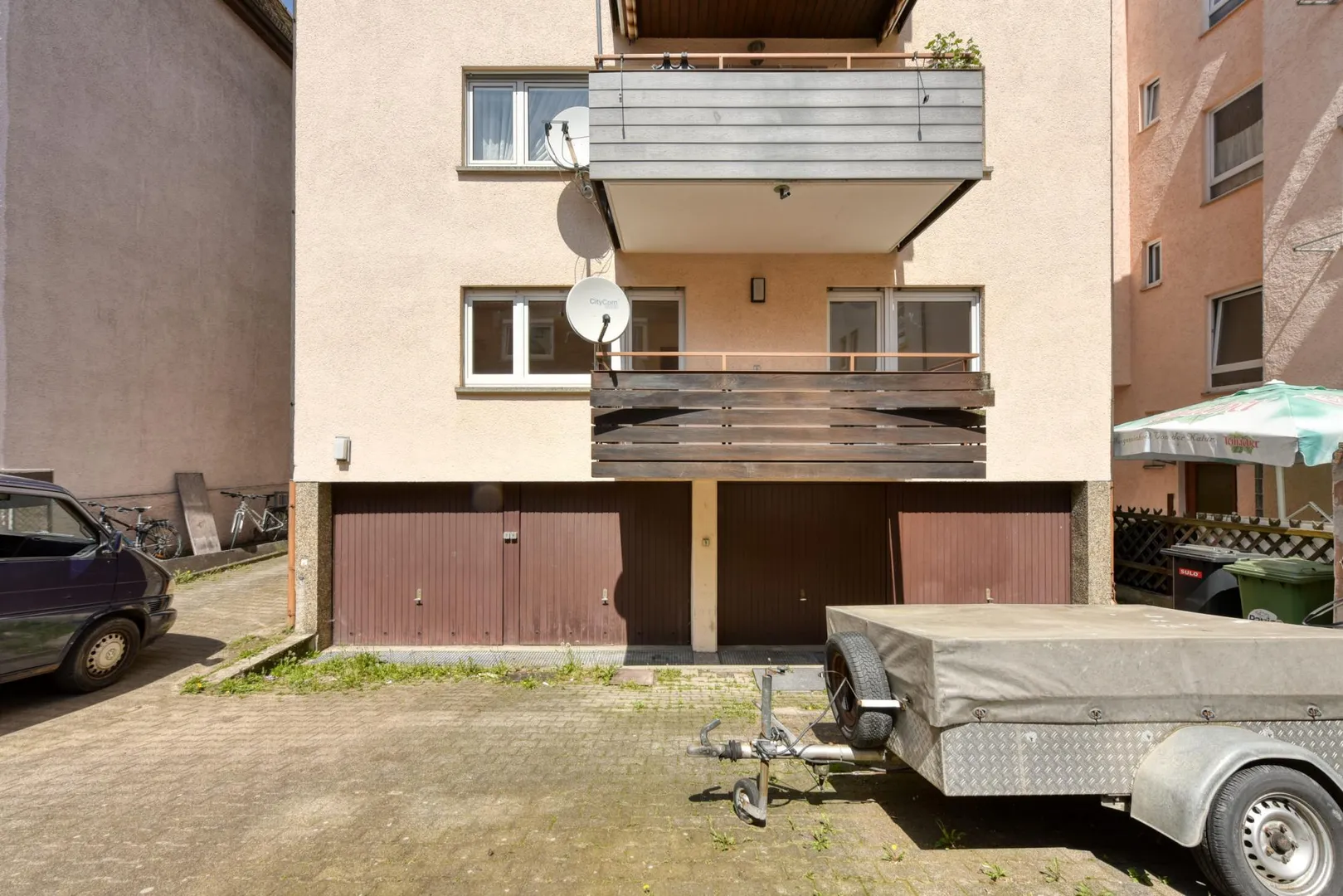 Zur Wohnung gehören eine kleine Einzel-Garage sowie zwei Abstellräume im Untergeschoss.