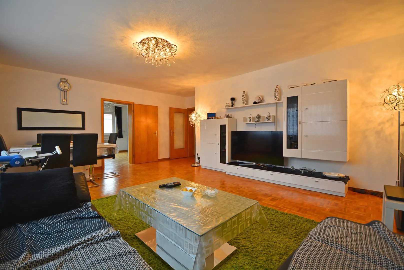 Zur Wohnung gehören ein ca. 15 m² großer Abstellraum im Untergeschoss sowie eine Garage neben dem Haus.