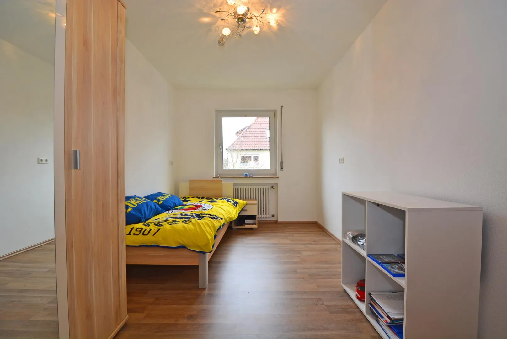 Diese frisch renovierte 4-Zimmer-Etagen-Wohnung befindet sich im Hochparterre (Erdgeschoss) eines 2-Familien-Reiheneckhauses.