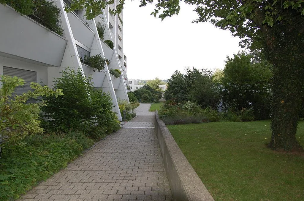 Diese terrassenartig angelegte Wohnanlage wurde 1972 in gehobener Ausstattung erbaut. Die Anlage ist aufgeteilt in 7 Hauseingänge mit über 200 Einheiten. Das Haus ist komplett 2-fach unterkellert und verfügt über einen Aufzug, eine Tiefgarage und Fernwärmeheizung.