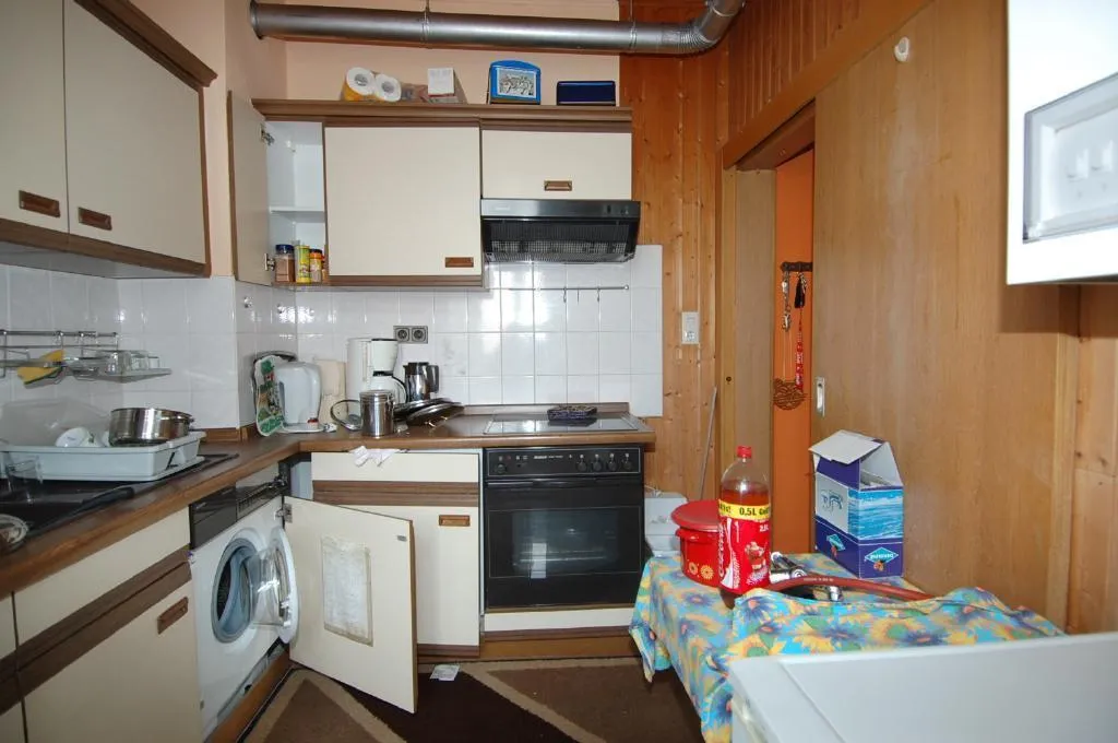 In der Küche ist eine Einbauküche mit Kühl-/Gefrierschrank, Herd mit Backofen, Spülmaschine und Waschmaschine vorhanden.