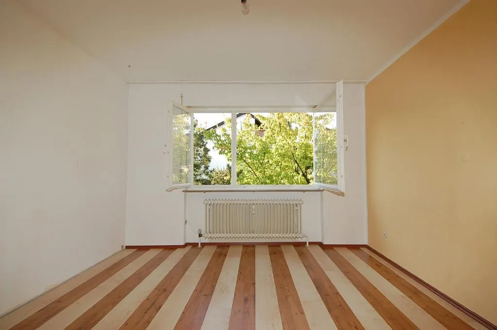 Das Schlafzimmer ist nach Norden ausgerichtet und verfügt über Laminatboden, das Kinderzimmer ist nach Westen ausgerichtet und mit Teppichboden ausgestattet.