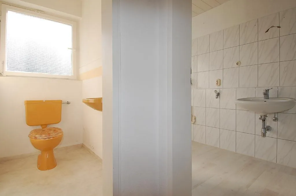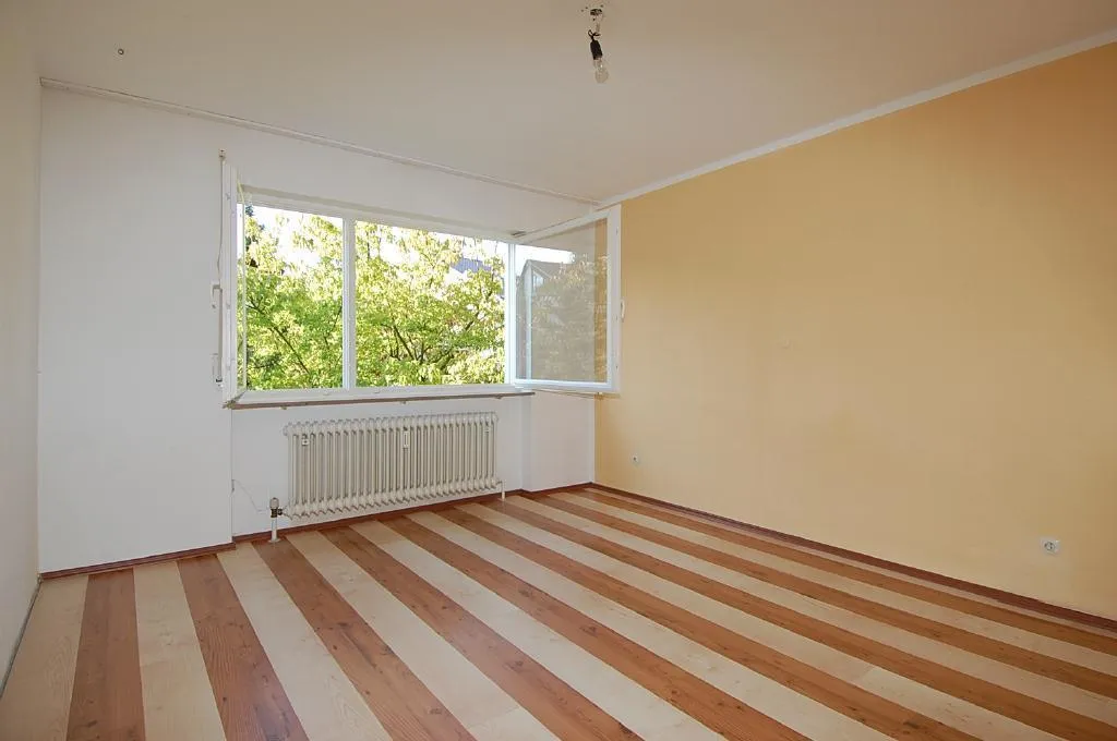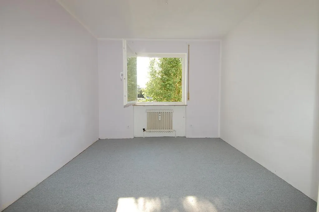 Der Grundriss der Wohnung ist gut: alle Räume sind vom Flur aus erreichbar, das Bad hat ein Fenster, das WC ist separat und die Wohnung verfügt über einen Balkon.