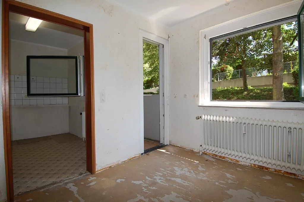 Die Wände sind in einem tapezierfähigen Zustand. Die Böden sind für einen neuen Belag vorbereitet.