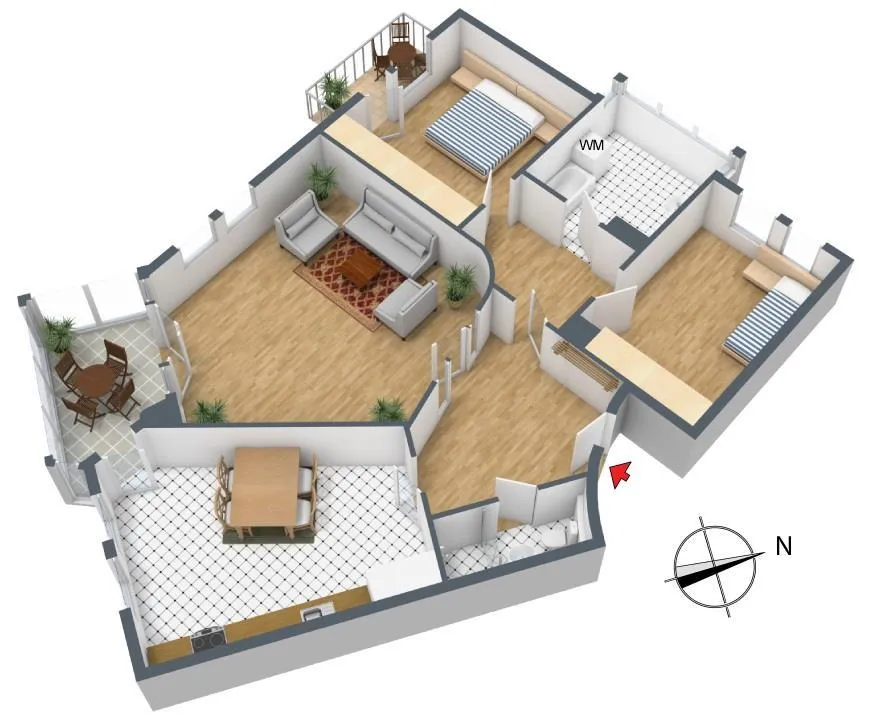 Ca. 2007 wurde im Flur und in den Zimmern Bambus-Parkett verlegt. Die Böden in den Bädern und in der Küche sind gefliest.