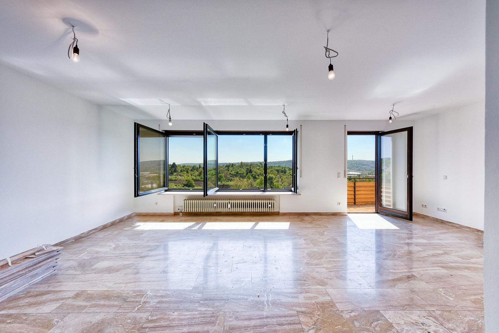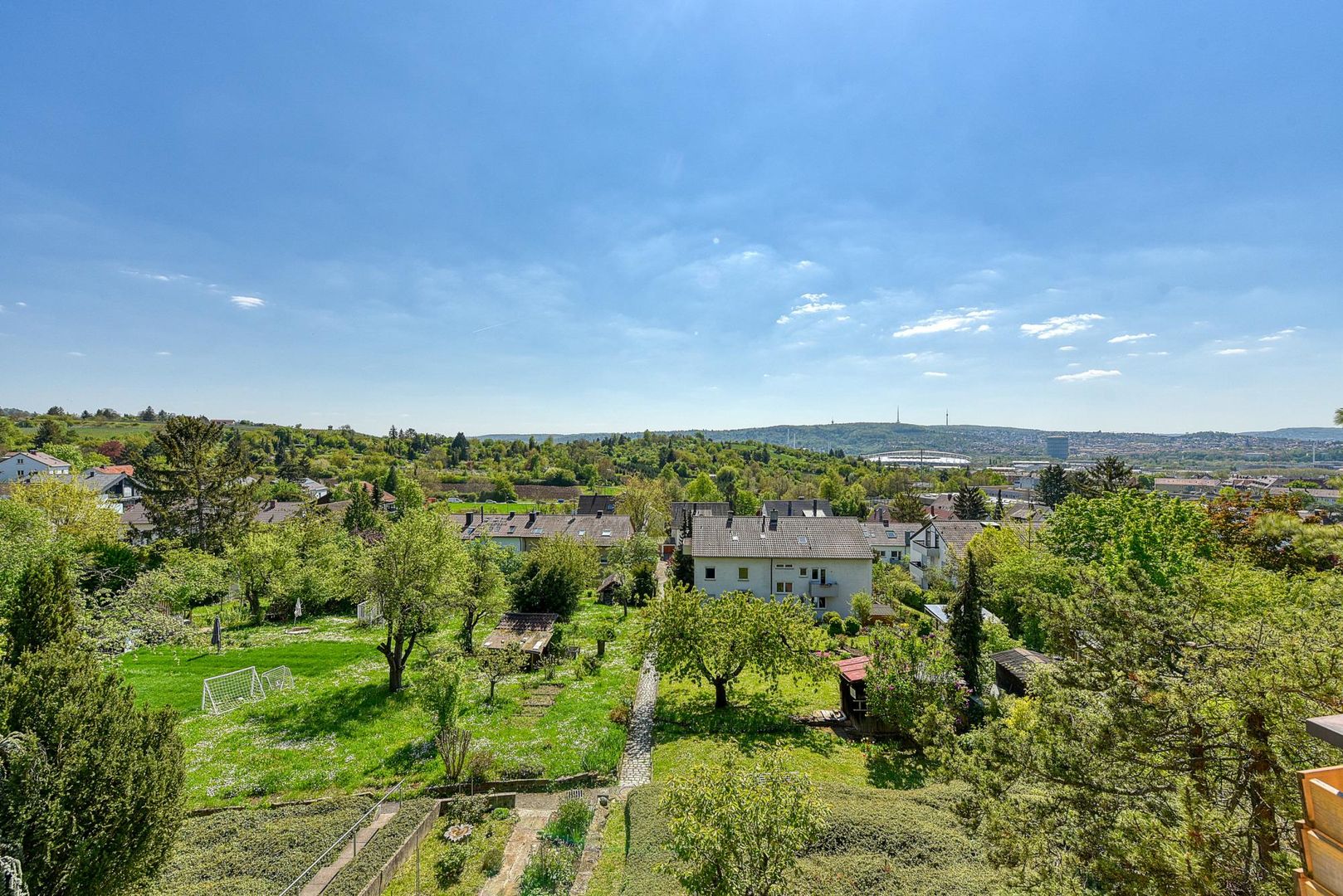 Von der Wohnung gibt es einen Fernblick über das Stadion zum Fernsehturm sowie bis in die Stuttgarter-City.