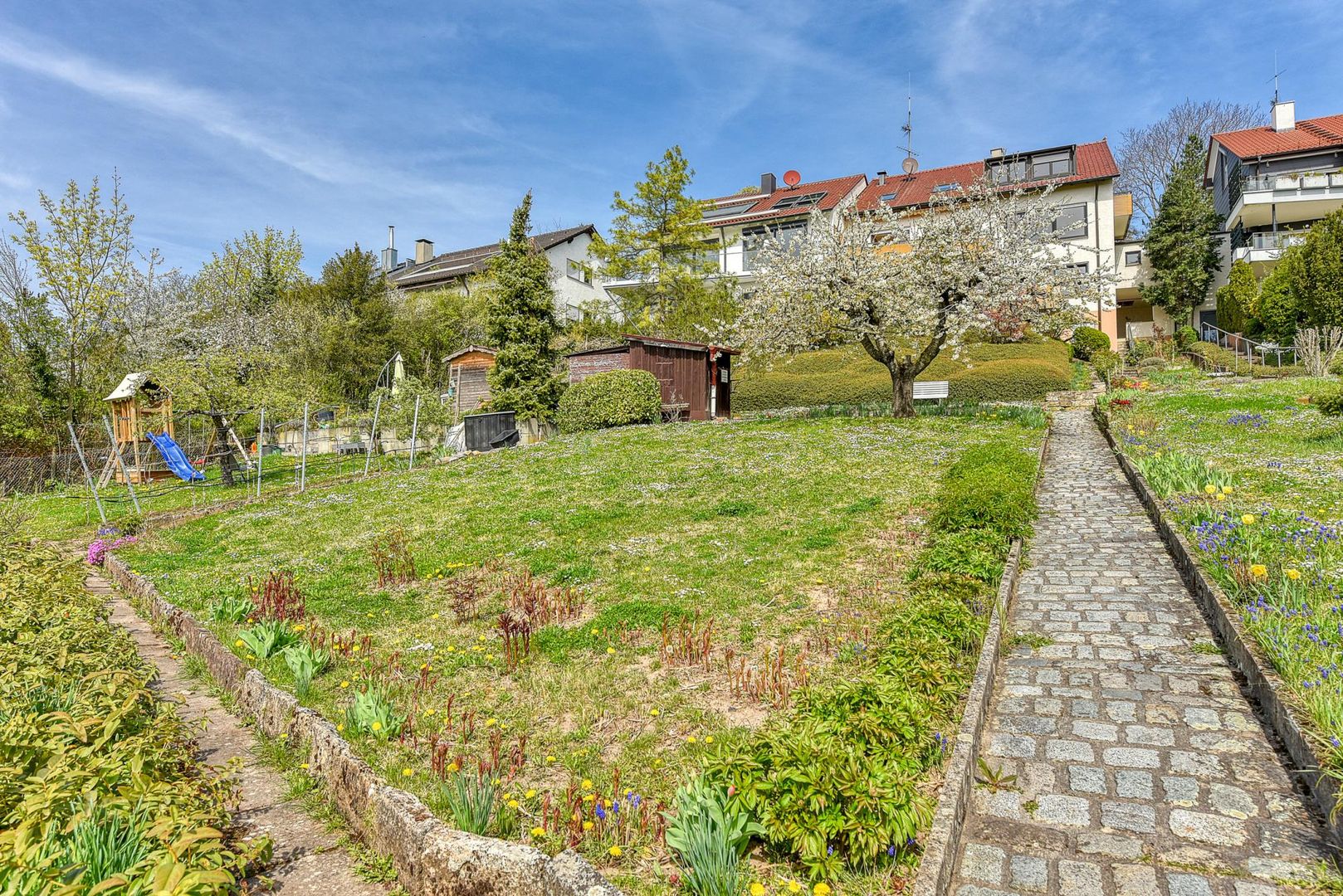 Das Wohngebiet ist gekennzeichnet durch eine überwiegend offene und 2-geschossige Wohnbebauung in Süd-Hanglage mit Fernblick.