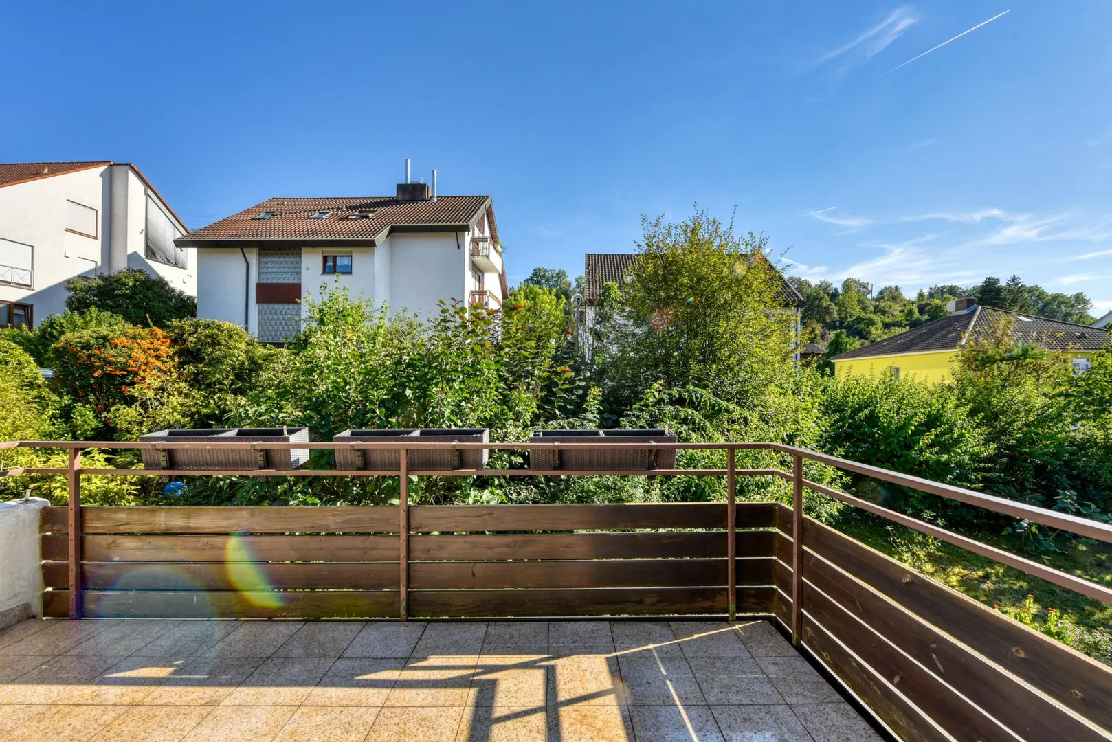 Diese helle und sonnige 3-Zimmer-Wohnung befindet sich im 1. Obergeschoss eines freistehenden 7-Familienhauses.