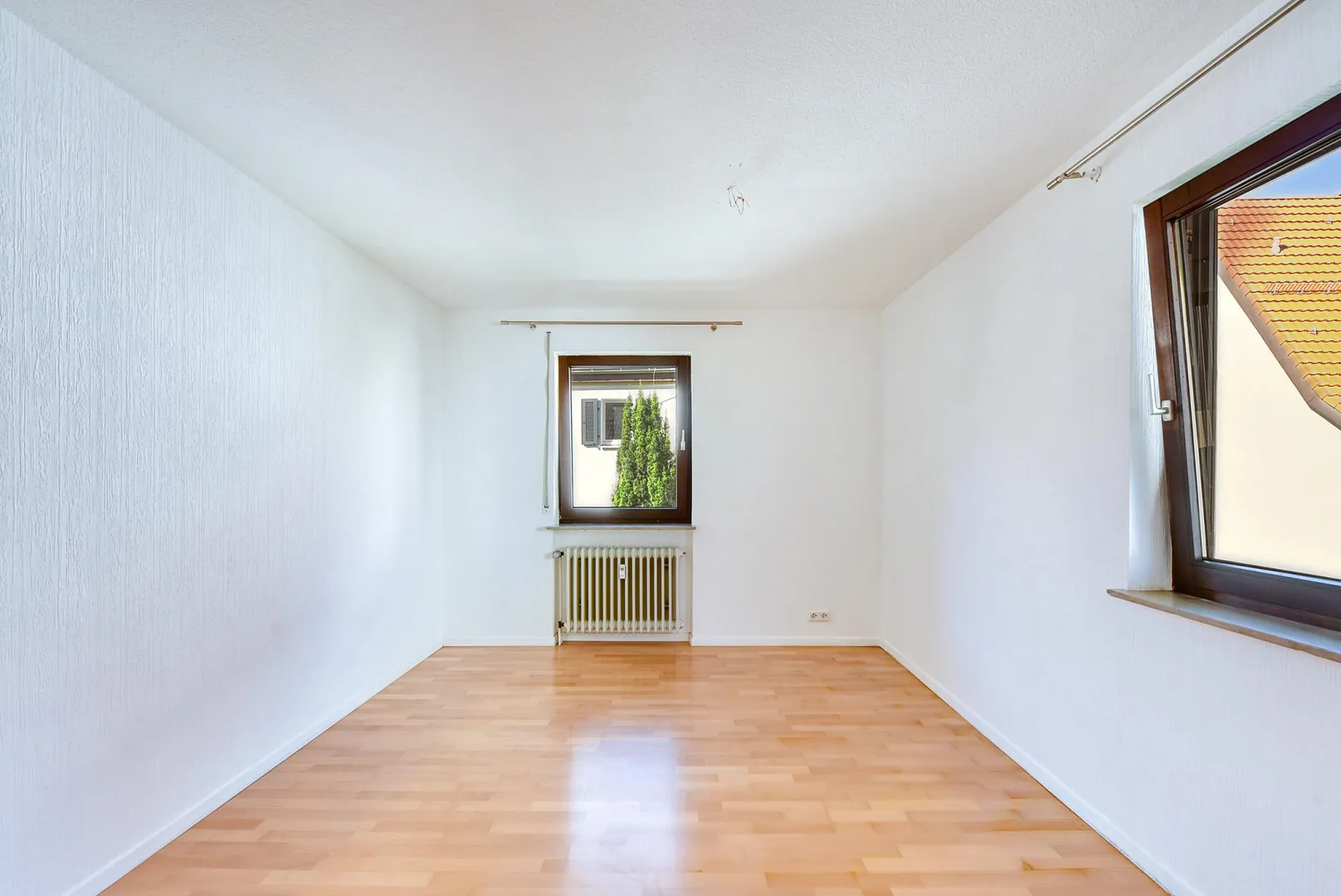 Die Wände sind überwiegend tapeziert und wurden aktuell frisch, weiß gestrichen.