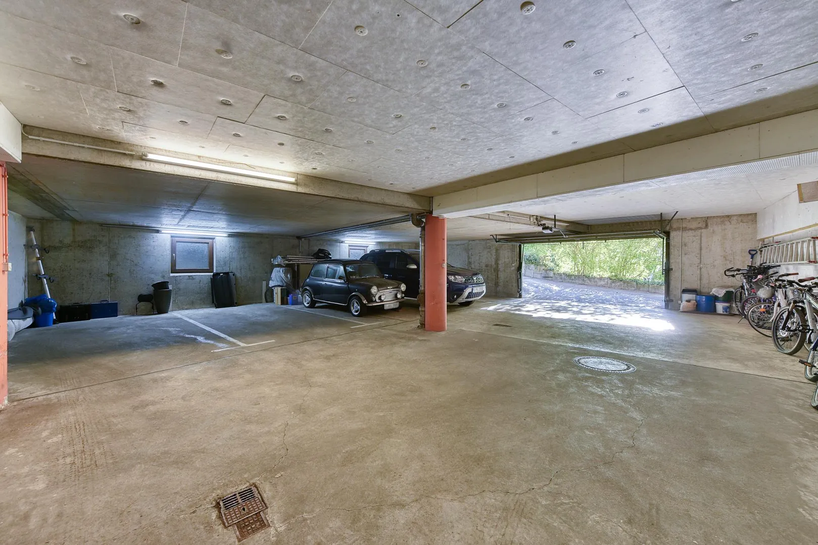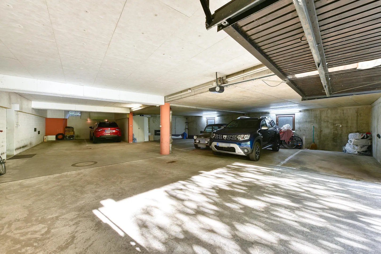 Zur Wohnung gehören ein Abstellraum im Untergeschoss sowie ein Kfz-Stellplatz in der Tiefgarage. Beides befindet sich im Untergeschoss.