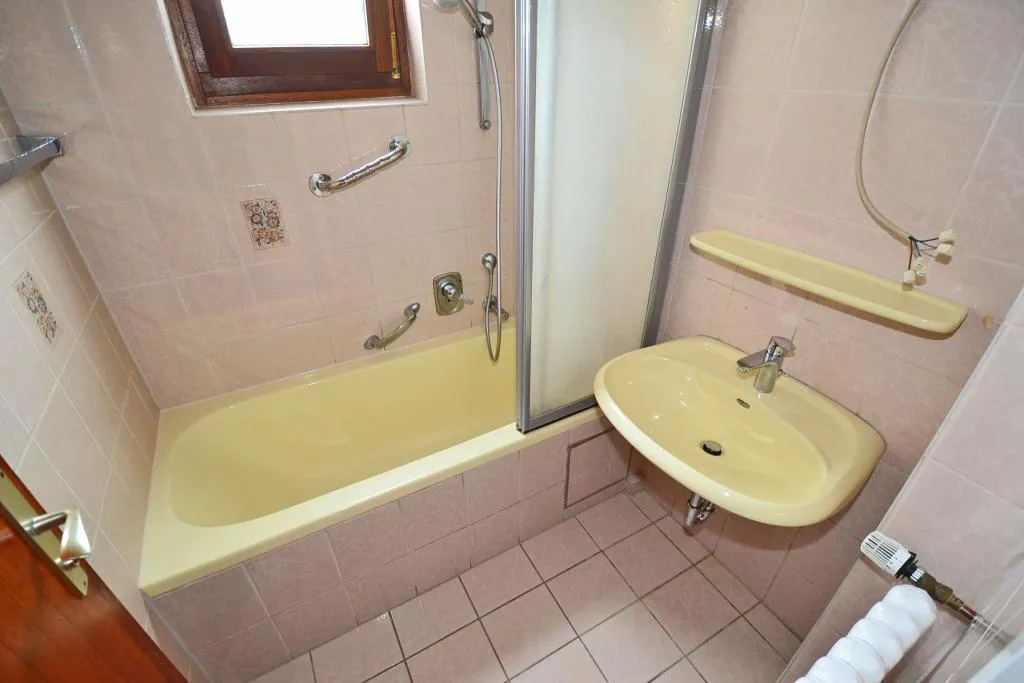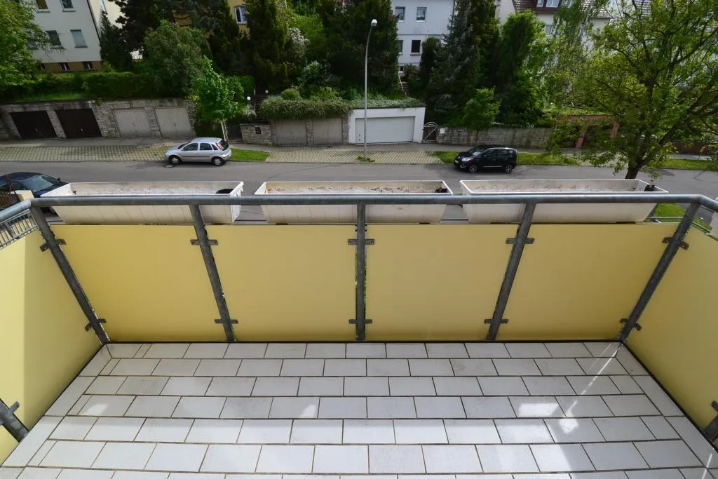 Der ca. 4,5 m² große Süd-Balkon ist ausgestattet mit einer Markise und ist über das Schlafzimmer begehbar. Das raumhoch geflieste Badezimmer mit Fenster ist ausgestattet mit Fliesenboden und einer Badewanne. Das gefliest WC mit Fenster ist separat. Bis auf das Esszimmer sind alle Räume direkt vom Flur erreichbar. Das Esszimmer ist über die Küche begehbar.