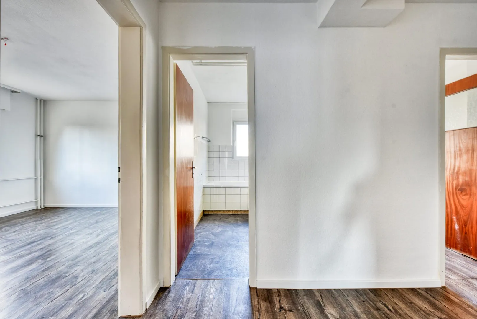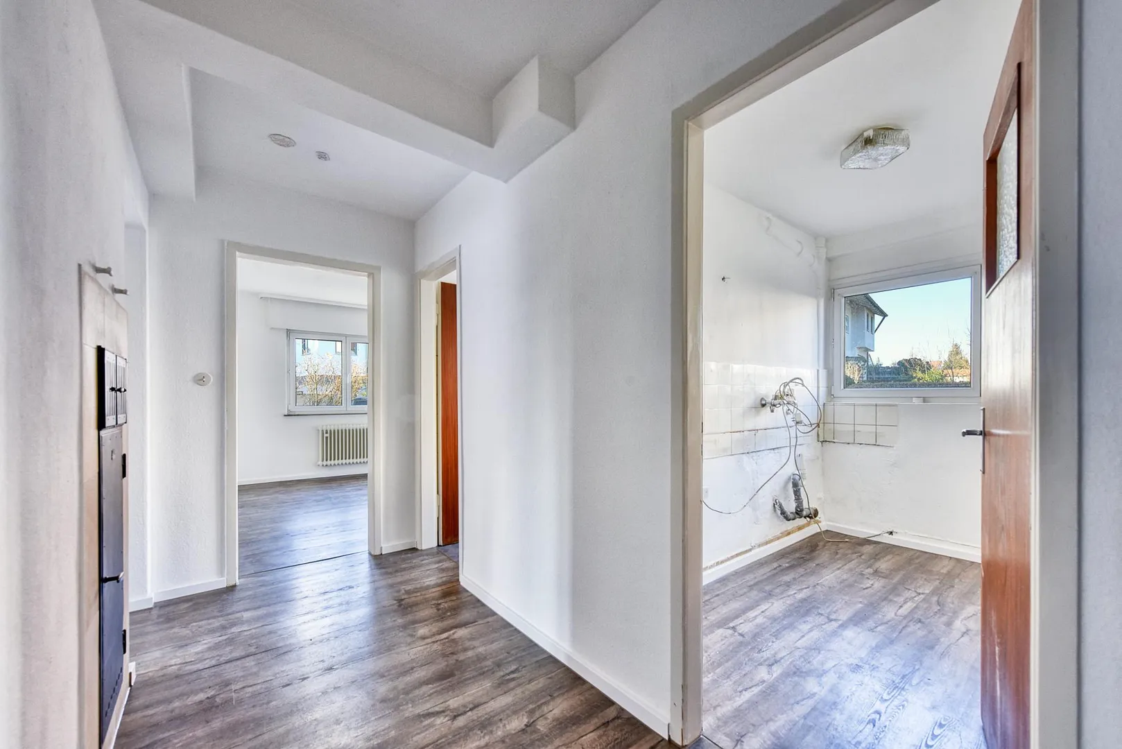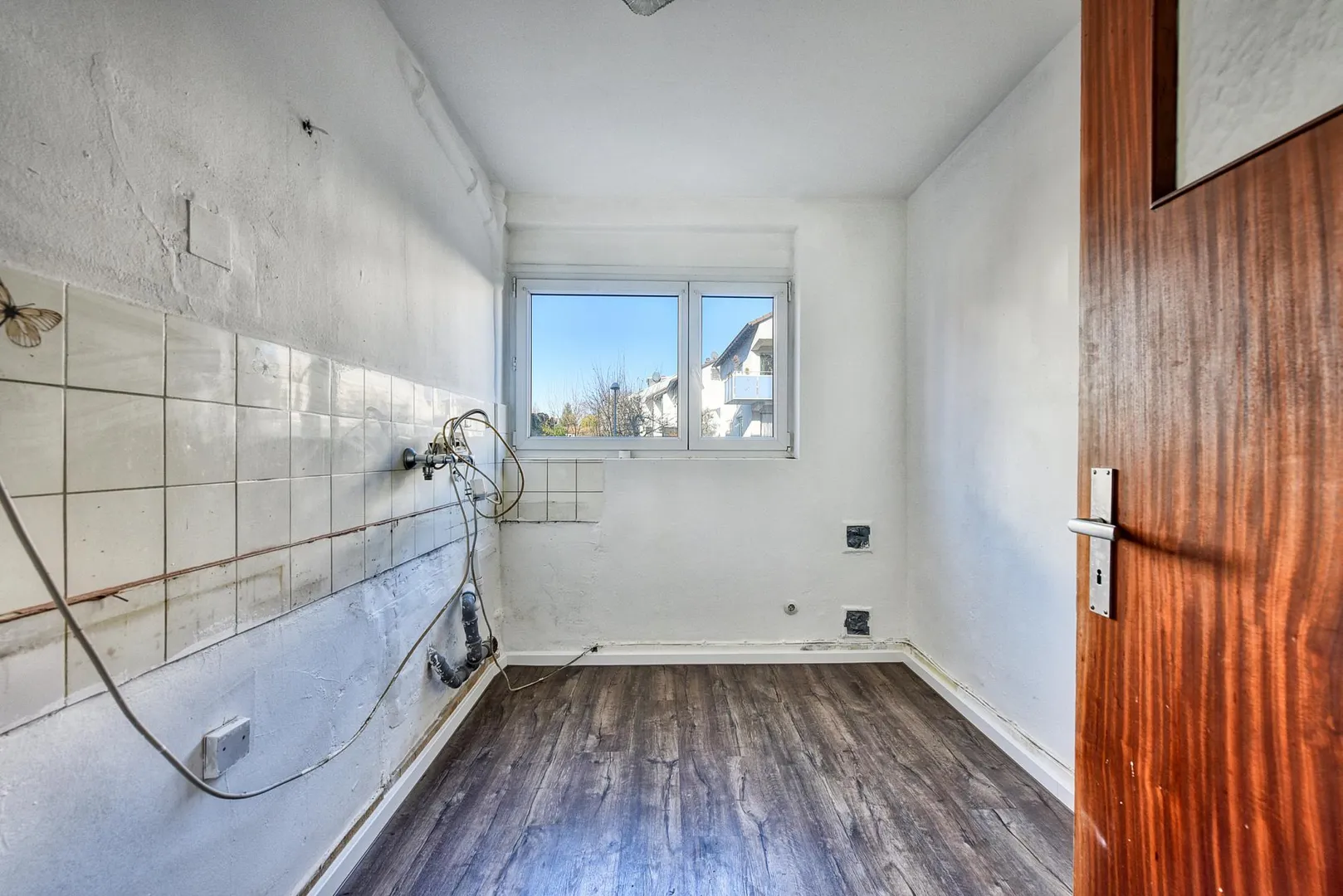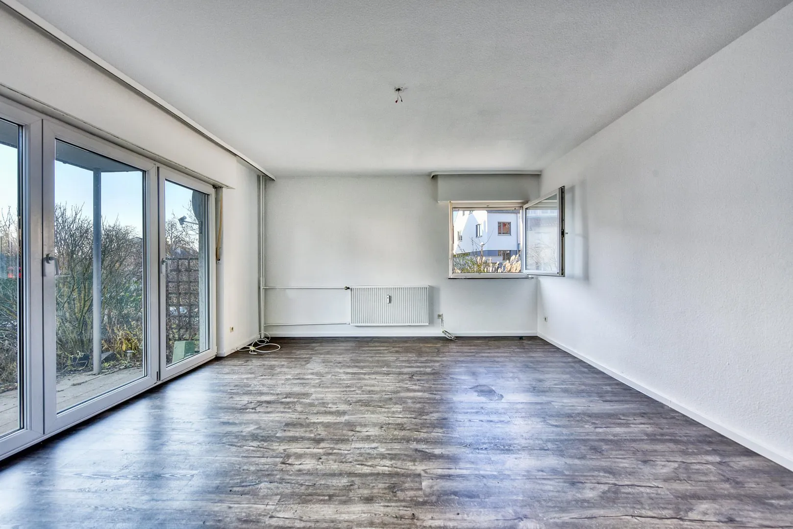 Diese teilweise frisch renovierte 2 1/2 bis 3-Zimmer-Wohnung mit Terrasse und Garten befindet sich im Erdgeschoss eines 5-Familien-Reiheneckhauses.