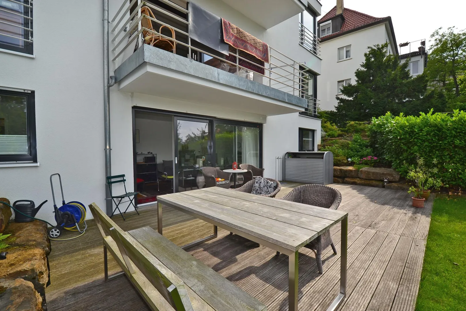 Umgeben ist die Terrasse von einer ca. 70 m² große Rasenfläche.