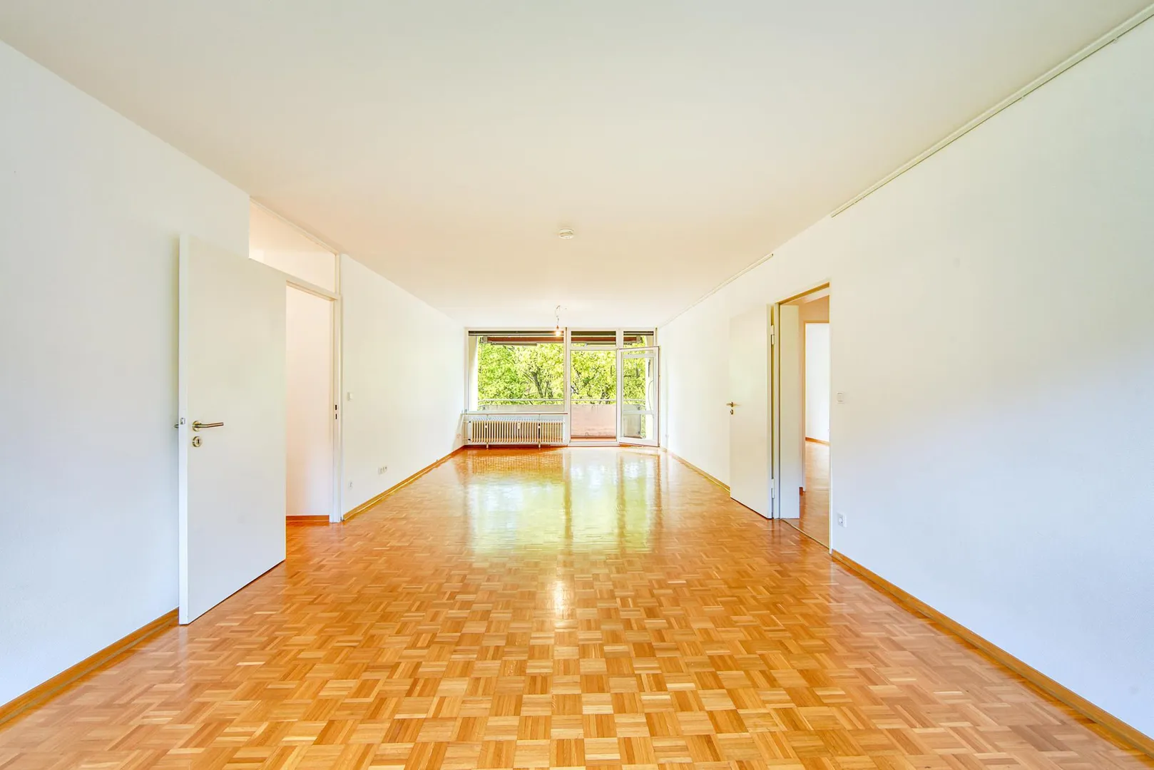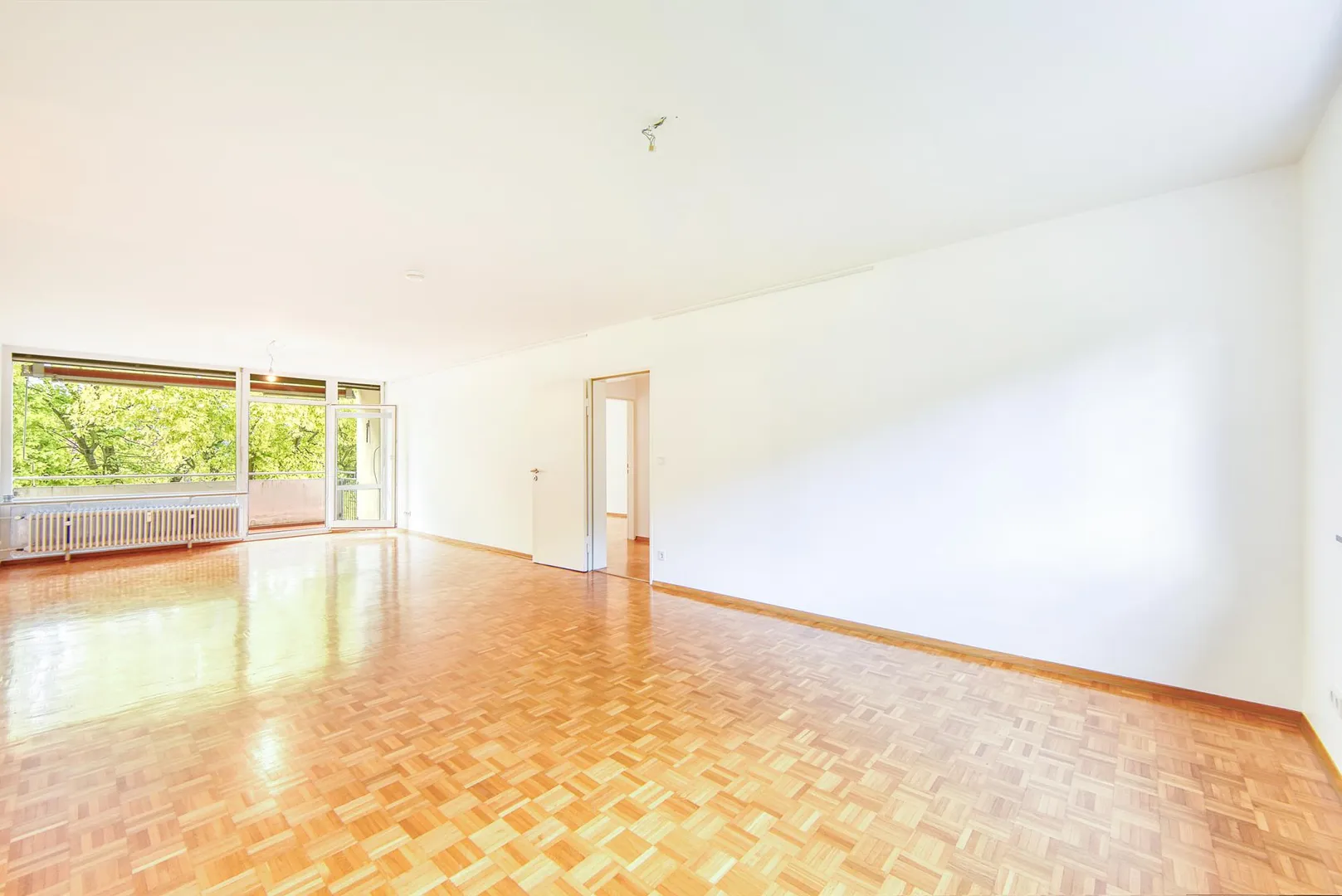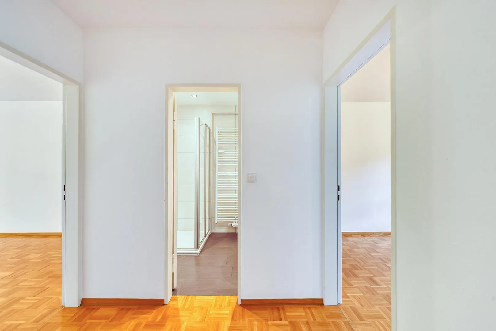 Die Wände sind überwiegend mit Glasfaser-Tapeten tapeziert, weiß gestrichen und befinden sich im top Zustand. Die Raumhöhen betragen ca. 2,45 Meter.