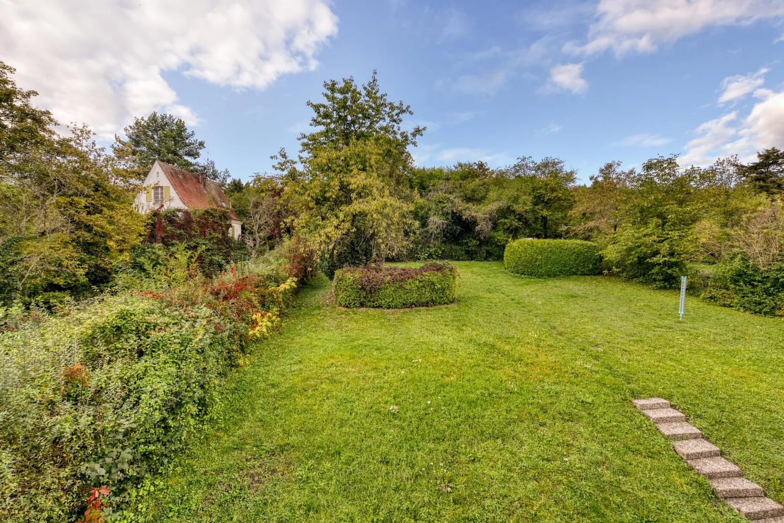Das Wohnhaus befindet sich ca. 30 Meter von der Straße entfernt. Das Grundstück grenzt auf der Nordseite direkt an Gärten, diese wiederum an den Lemberg mit Weinbergen. Auf der Nordseite ist es grün, absolut ruhig und idyllisch.