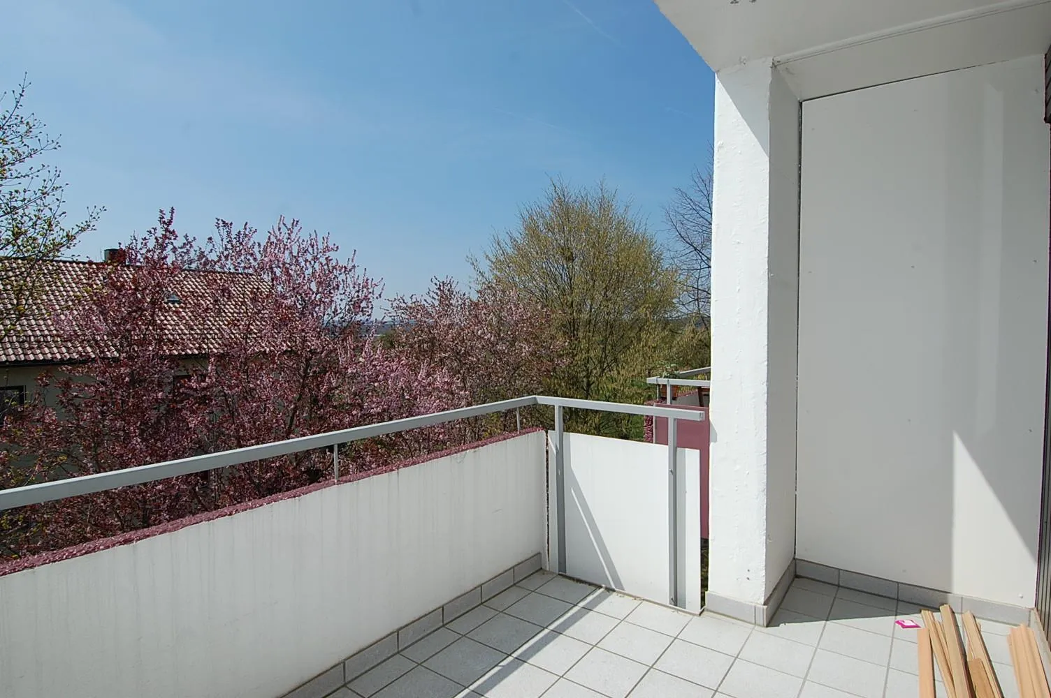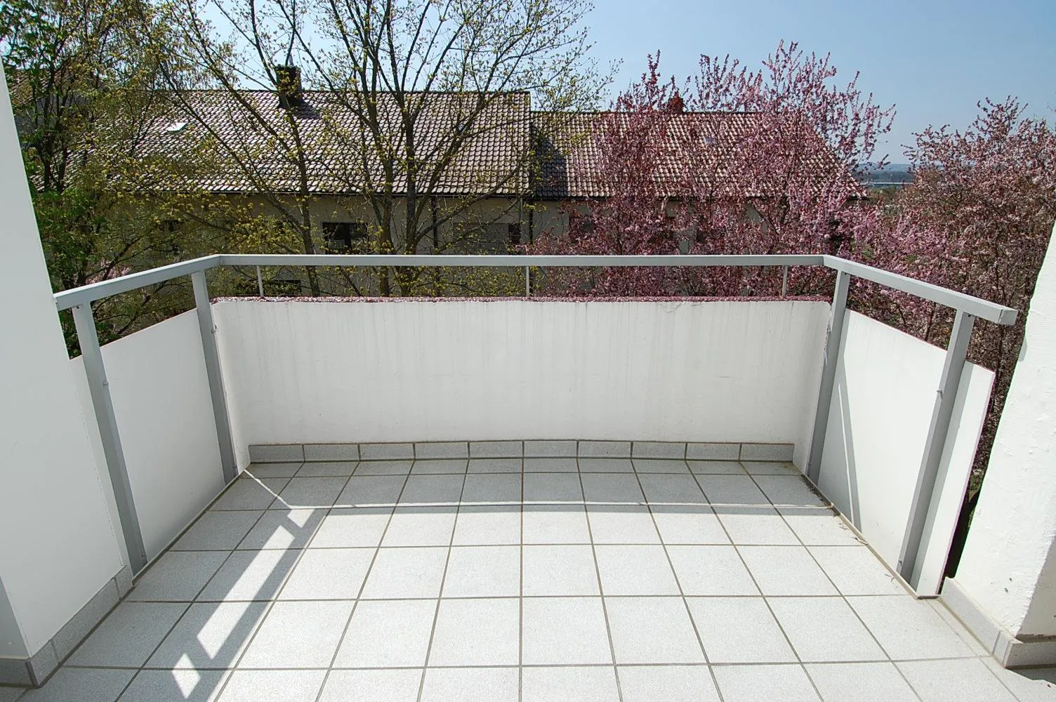Der Balkon ist vom Wohnbereich aus zugänglich. Er ist teilweise überdacht und sonnig nach Süden ausgerichtet.