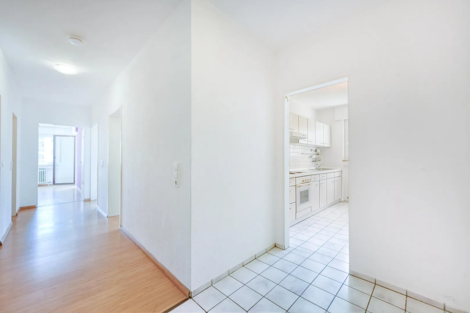 Im Flur sowie in den Zimmern ist Laminat verlegt. Die Böden in der Küche, im Badezimmer sowie im WC sind gefliest.
