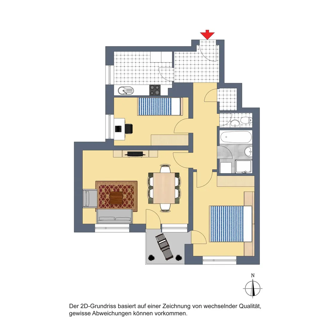 Das Wohnzimmer, das Schlafzimmer sowie der Balkon sind nach Süden ausgerichtet. Das Kinderzimmer sowie die Küche sind nach Westen ausgerichtet.