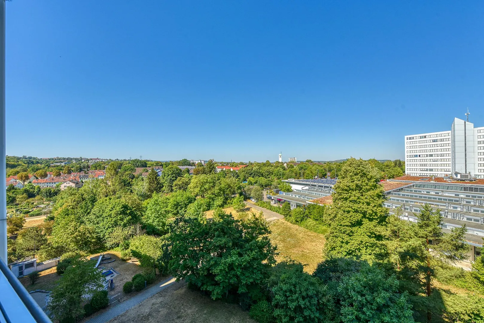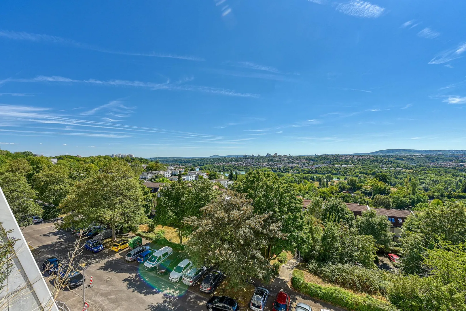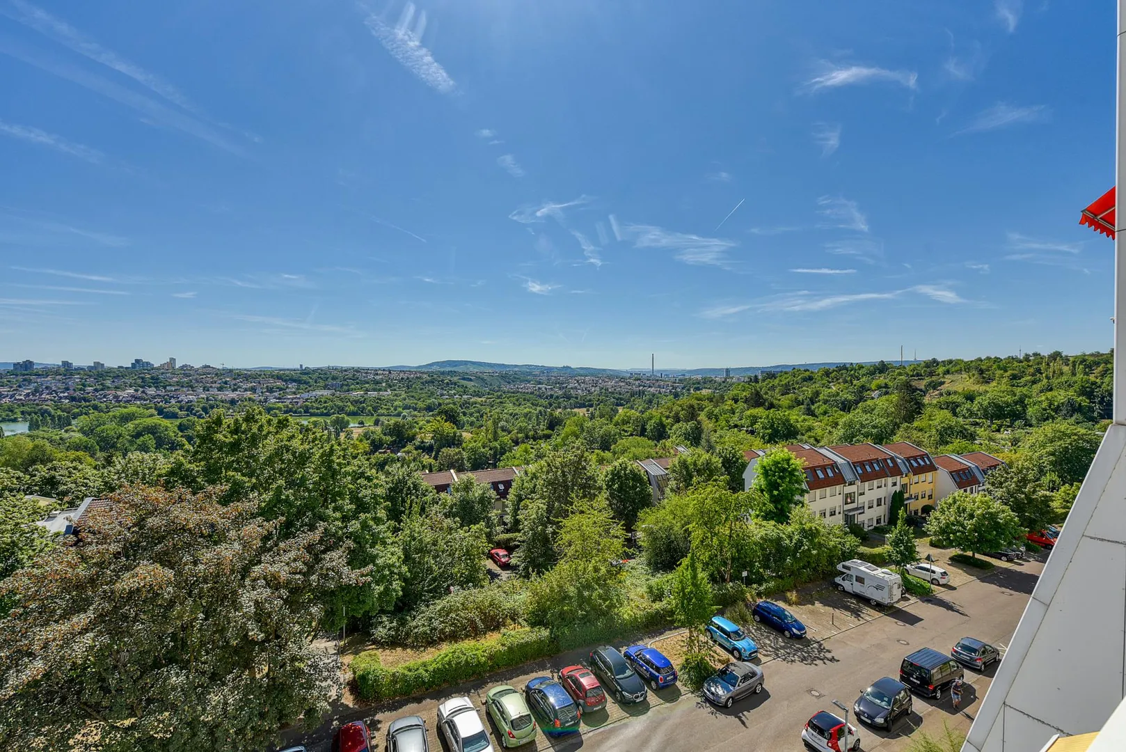 Hier wohnen Sie bequem in Süd/Ost-Ausrichtung mit traumhafter Panoramafernsicht über den Max-Eyth-See und Neckar bis zum Kappelberg sowie in Nord/West-Ausrichtung Richtung Einkaufszentrum Freiberg.