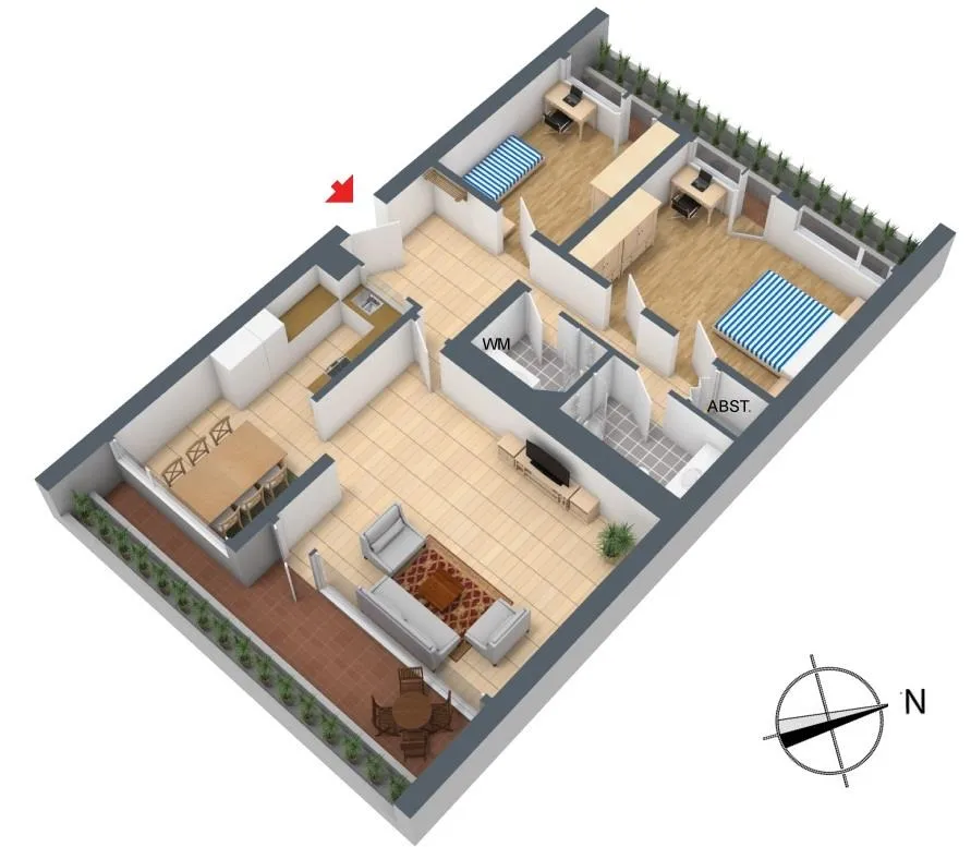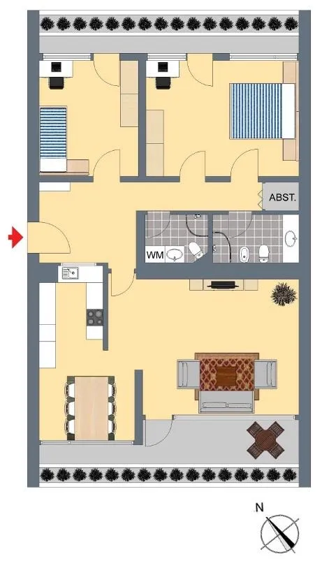 Hier wohnen Sie bequem. Im Haus gibt es eine eigene Hauswäscherei, einen Hausmeister, einen Kehrwochenservice, einen Winterdienst, Müllschlucker sowie elektrische Hauseingangstüren.