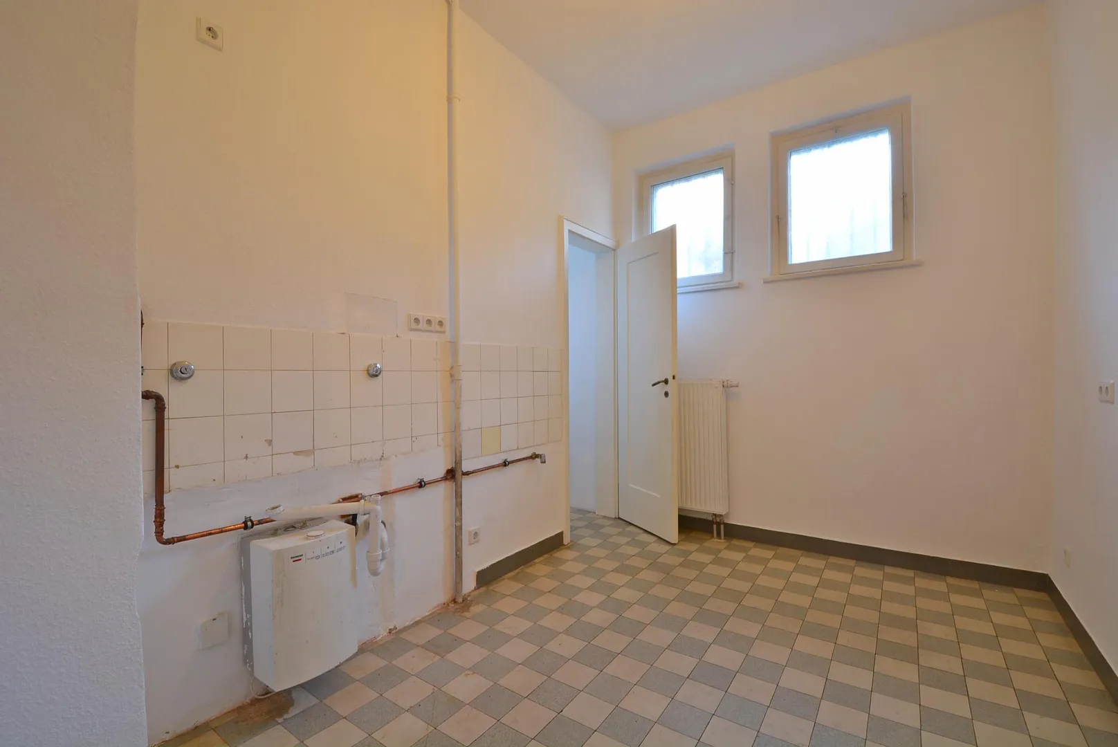 Die geräumige Küche ist mit Fliesenboden und einer angrenzenden Kammer ausgestattet.