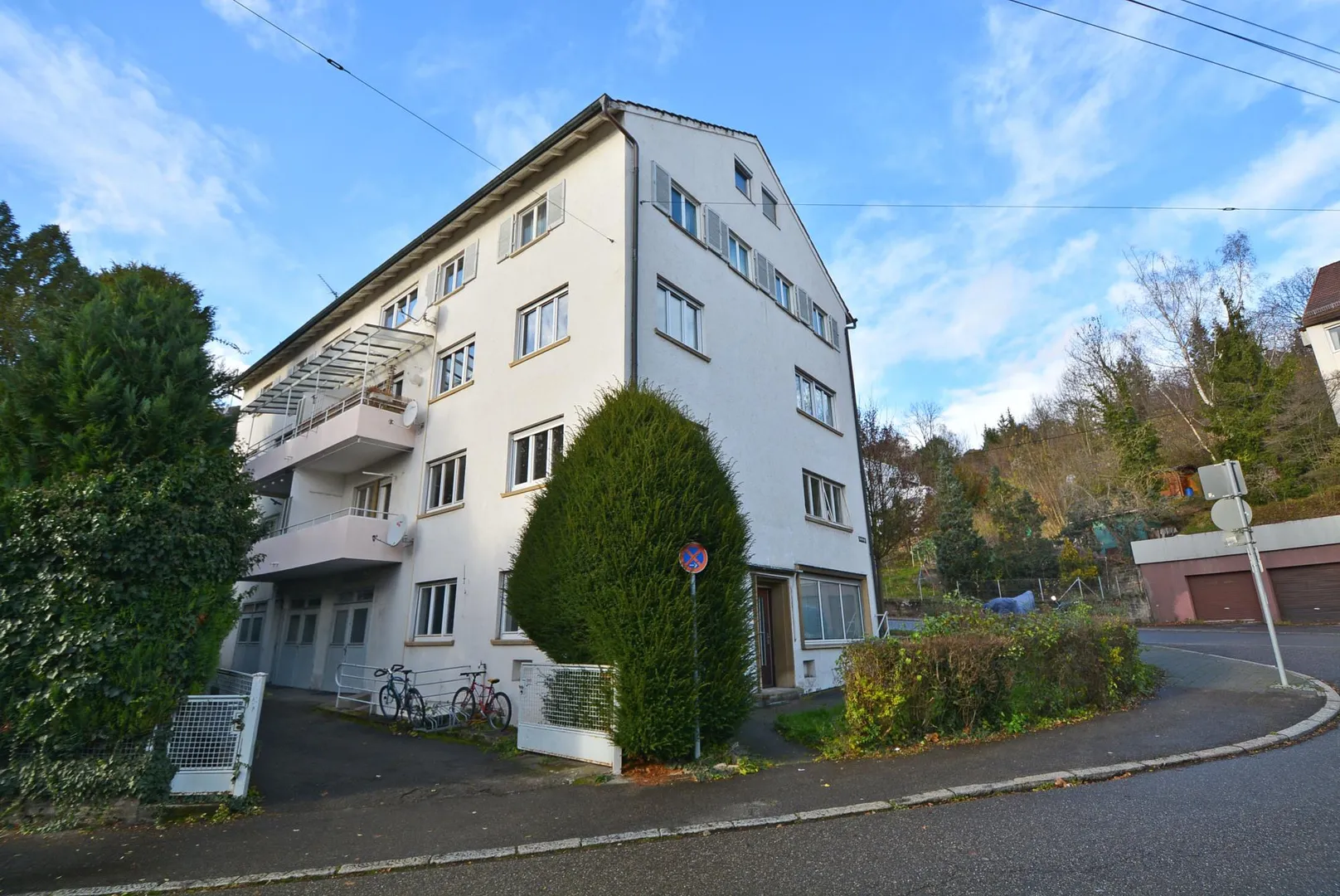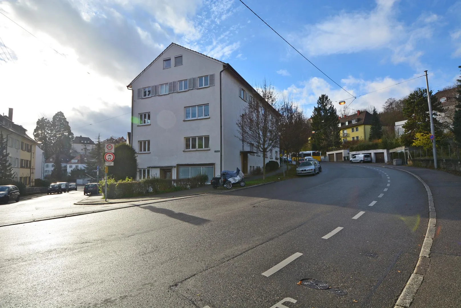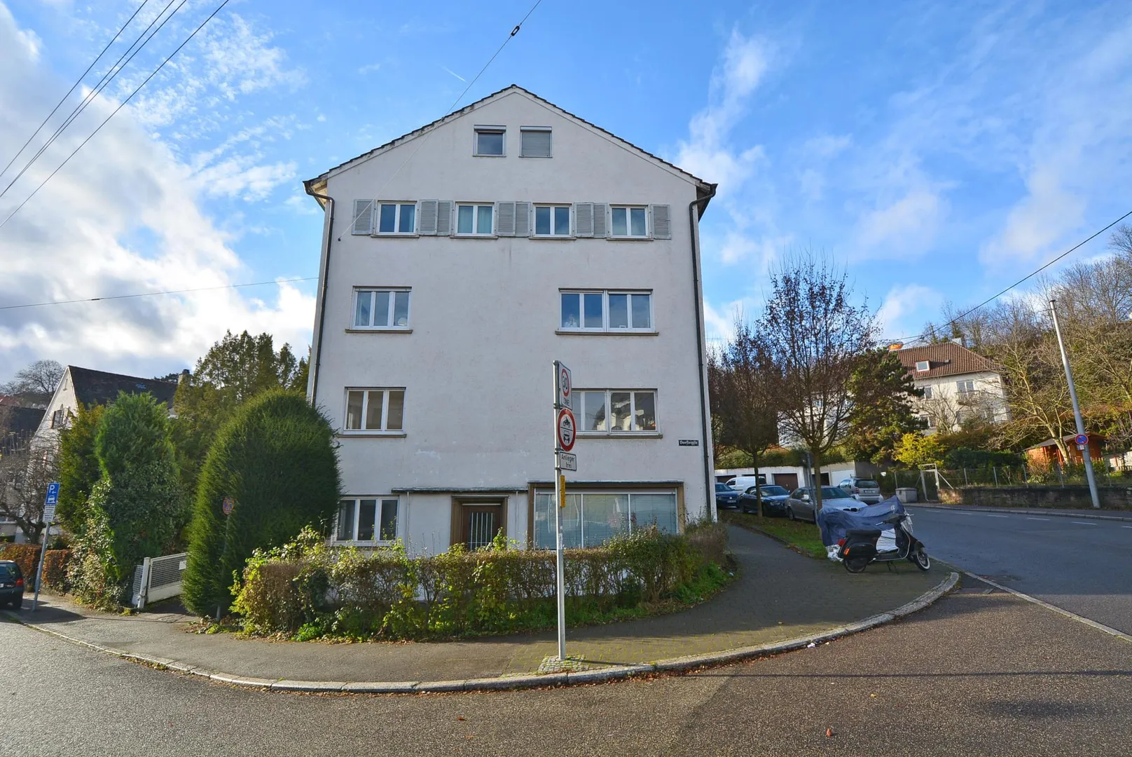 Das Haus befindet an der Ecke Zeppelinstraße / Vorsteigstraße, in zentrumsnaher Lage von Stuttgart-West im Stadtteil "Hölderlinplatz".