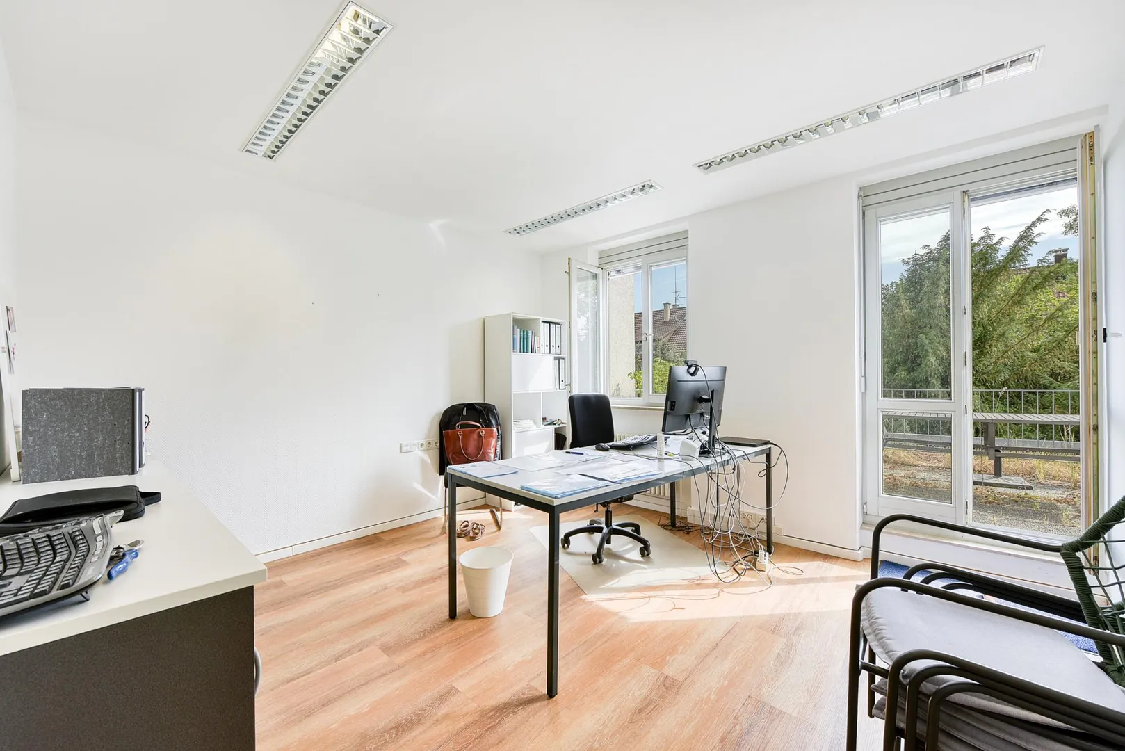 Vom ersten Büroraum geht es auf die ca. 21 m² große Terrasse.
