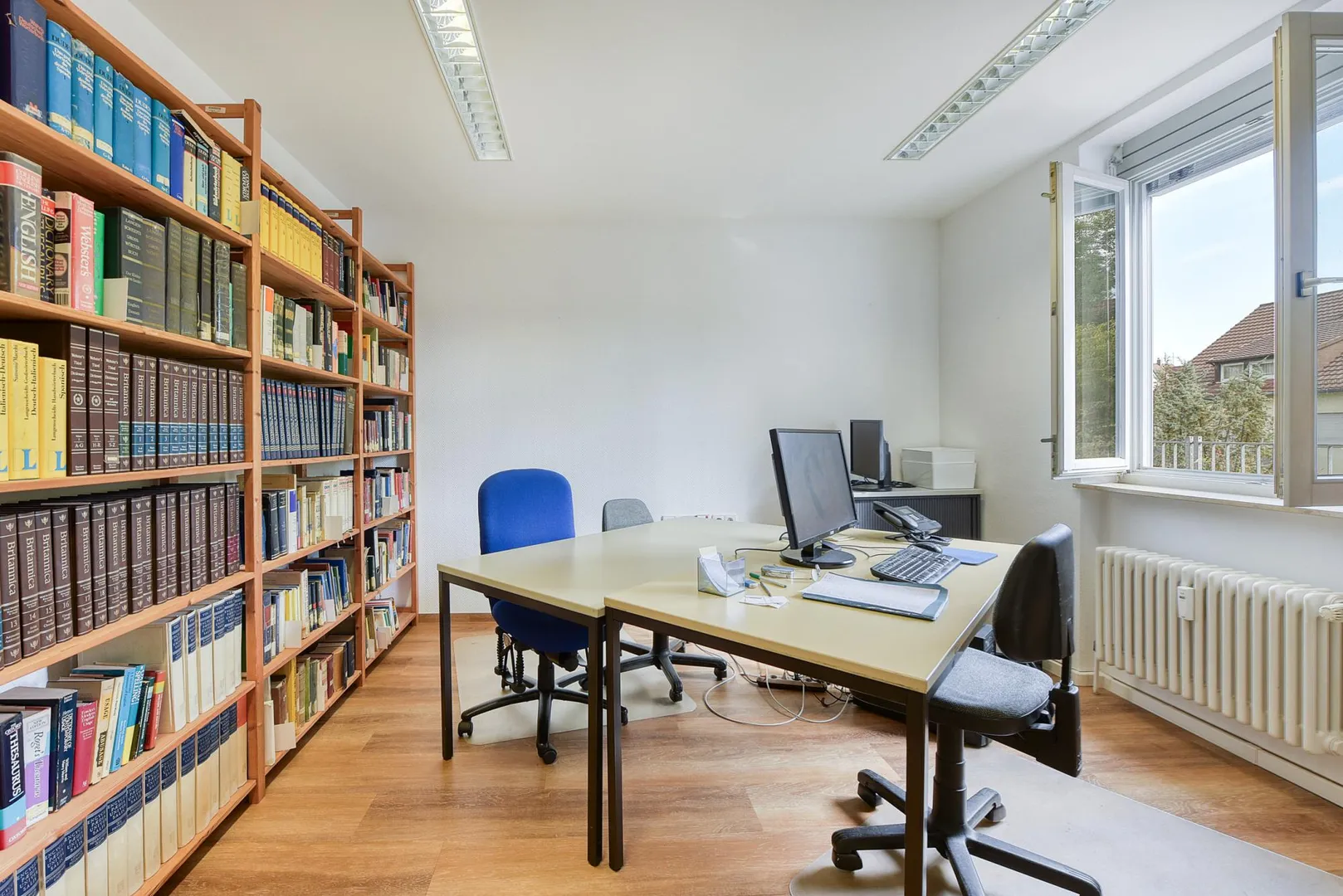 Diese moderne und gepflegte 4-Raum-Büroeinheit befindet sich im 1. Obergeschoss eines Wohn- und Geschäftshauses mit 4 Gewerbe- und 6 Wohneinheiten.