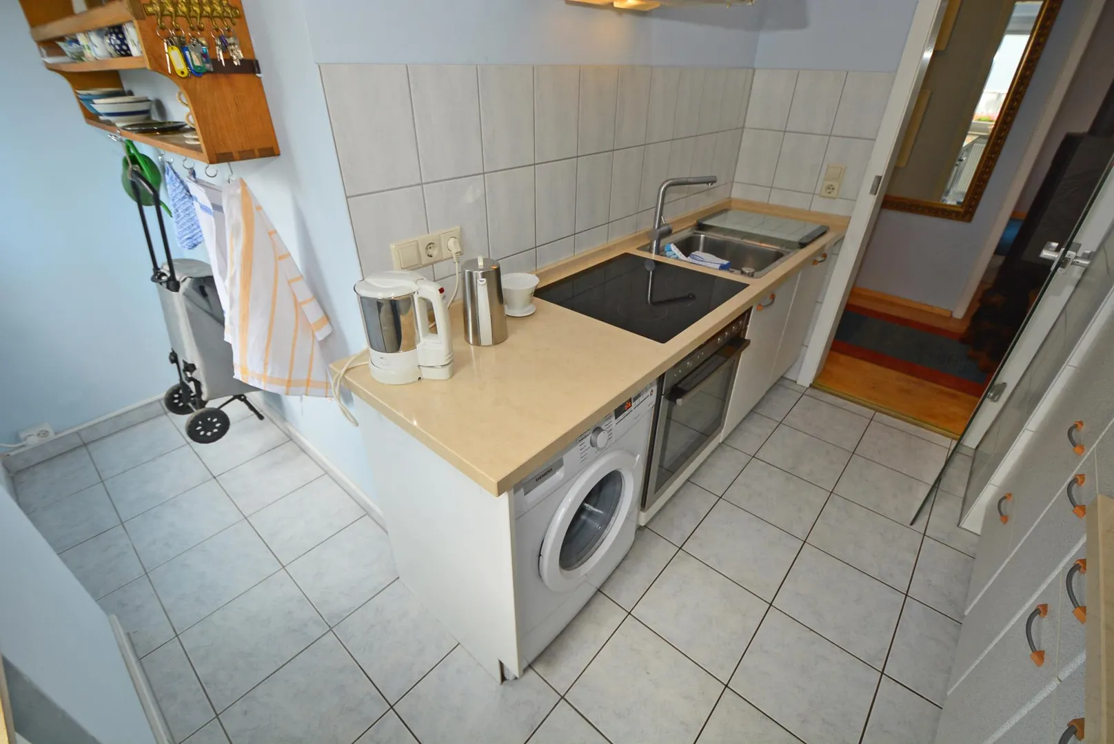 Der Anschluss für die Waschmaschine befindet sich in der Küche.