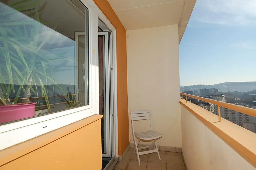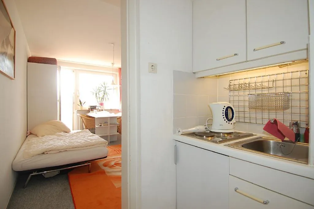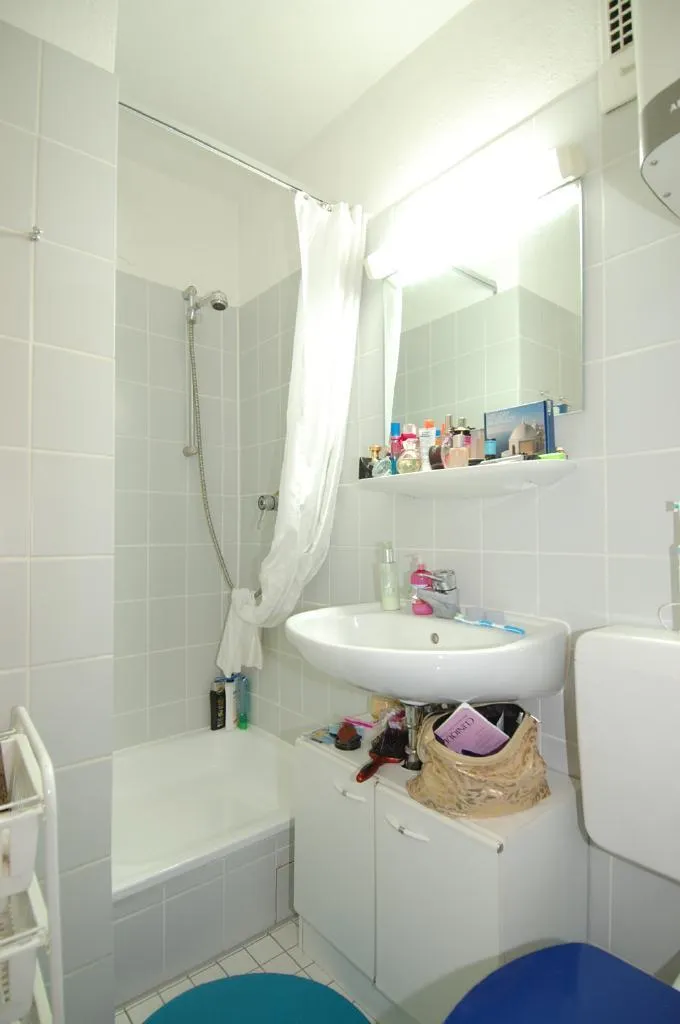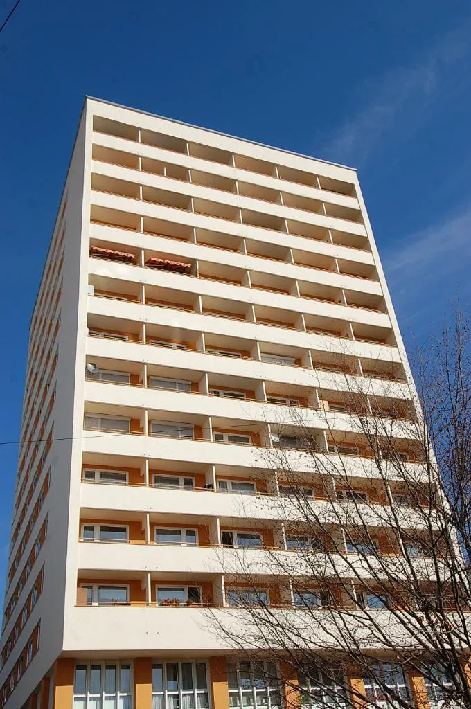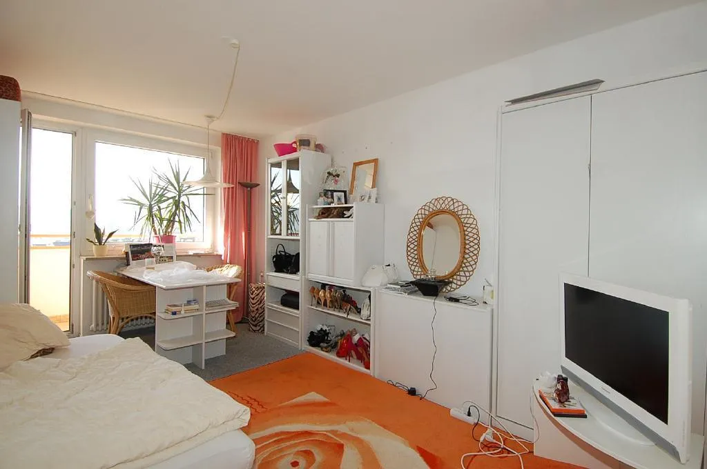 Dieses sonnig helle und möblierte 1-Zimmer-Apartment befindet sich im 13. Obergeschoss im Hochhaus "Hölderlin" mit 164 Wohneinheiten.