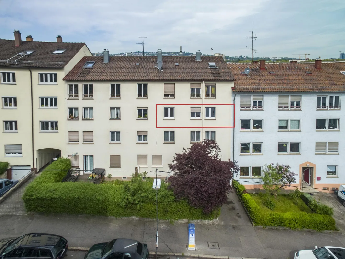 Das Wohnhaus befindet sich an der Verbindung der Stadtteile "Stöckach" und "Kernerviertel" in Stuttgart-Ost.