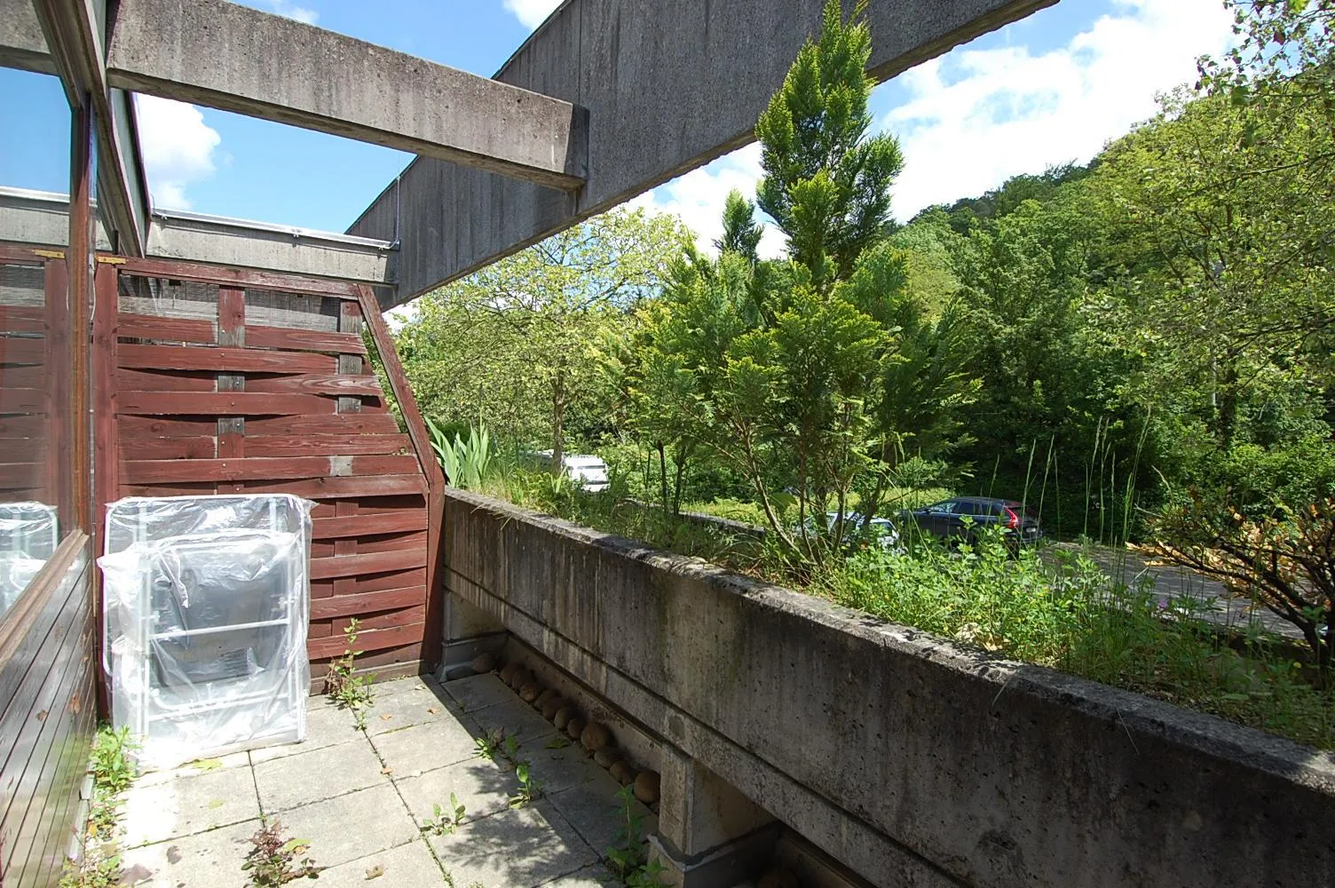 Der Balkon mit Blick auf den Kräherwald ist nach Osten ausgerichtet. Ein Balkontisch und 2 Klappstühle sind vorhanden.