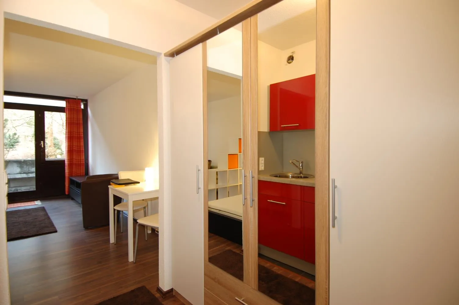 Das möblierte 1-Zi.-Apartment befindet sich im Hochparterre einer Anlage mit 87 Wohneinheiten.
