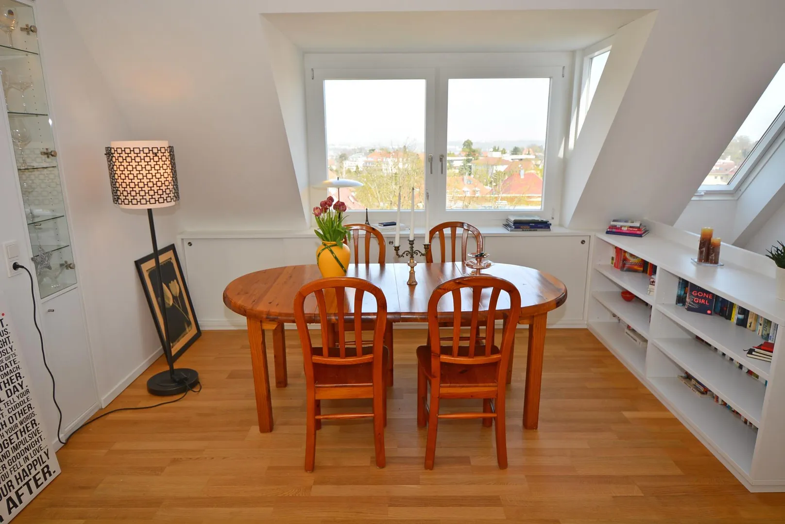 Wohnen & Arbeiten sowie Kochen & Essen werden hier auf knapp 60 m² bequem kombiniert.