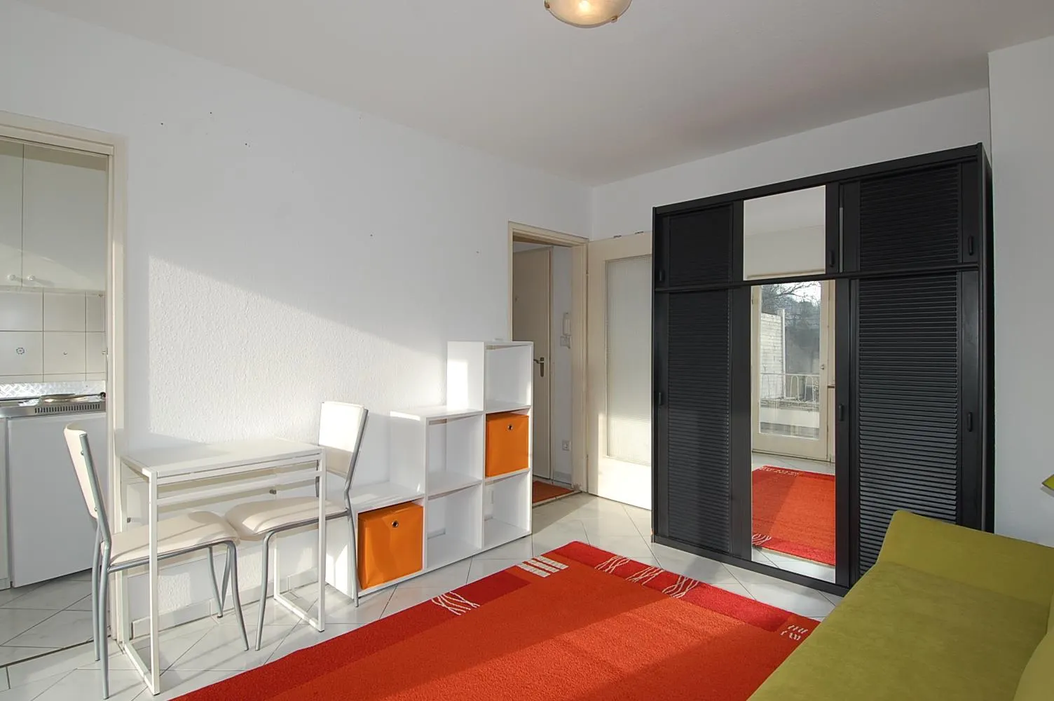 Dieses möblierte 1 Zi.-Apartment mit großer Süd-Terrasse befindet sich im 1. Obergeschoss eines 15-Familienhauses.