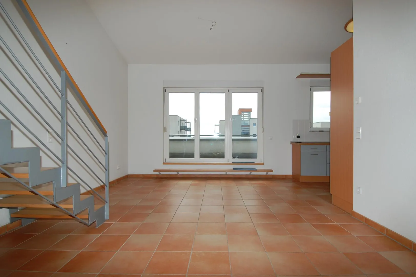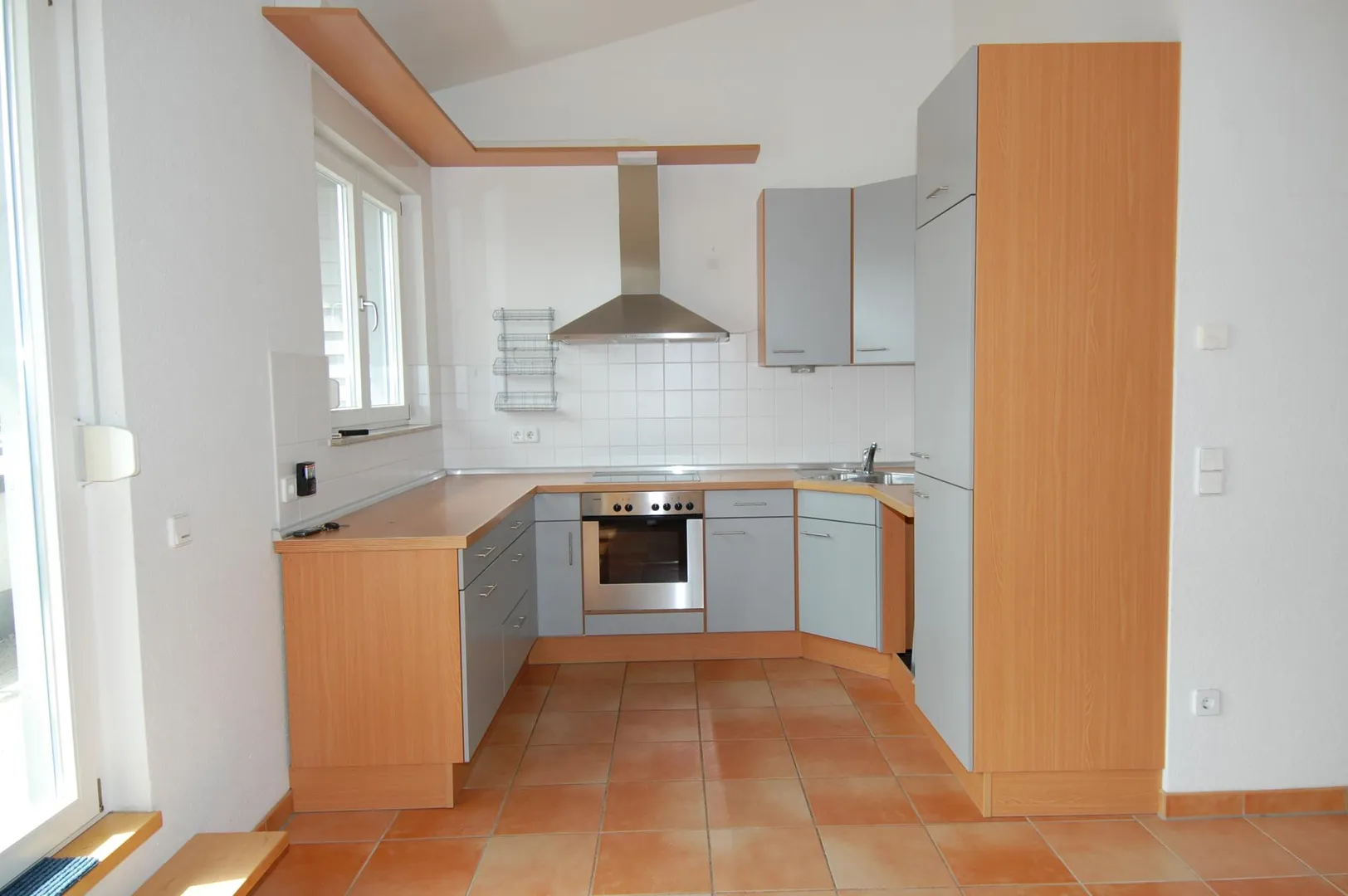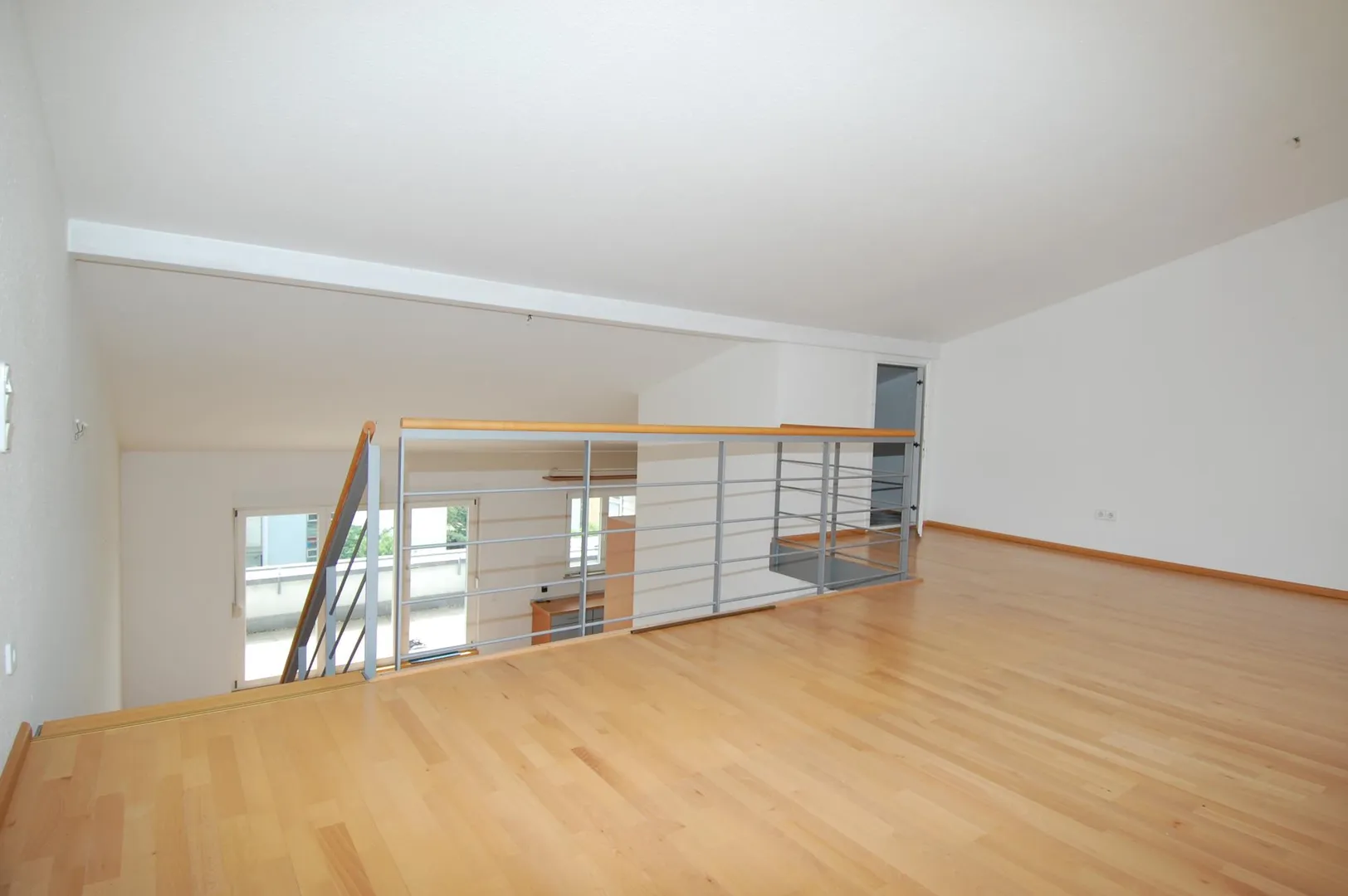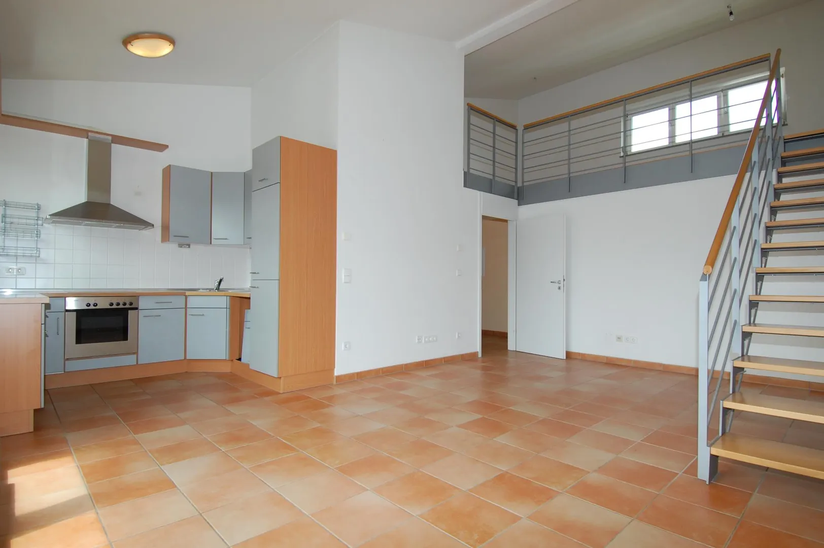 Außergewöhnliche 2 Zimmer-Dachgeschoss-Galerie Wohnung mit Fußbodenheizung und offener Küche mit Einbauküche.