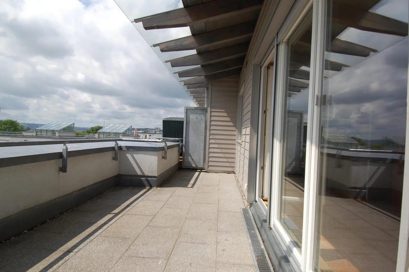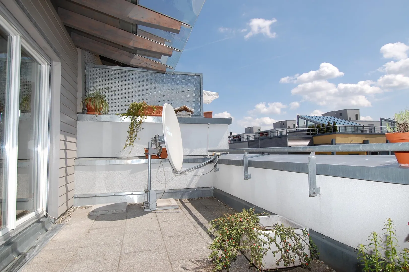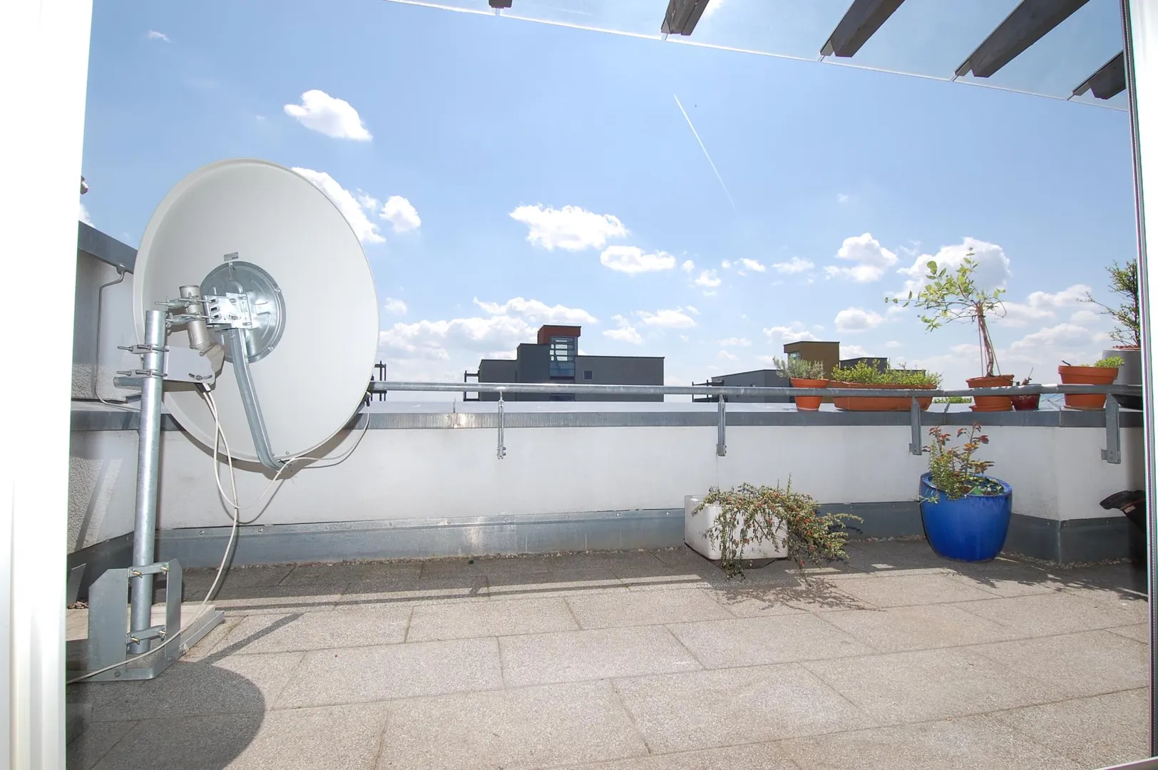 Die großzügige Dachterrasse ist ca. 14 m² groß und ist nach Süden ausgerichtet.